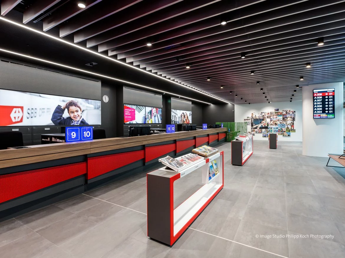Um die bestmögliche Raumbehaglichkeit in den neuen Reisezentren zu gewährleisten, setzt die SBB auf Klimadeckenlösungen.