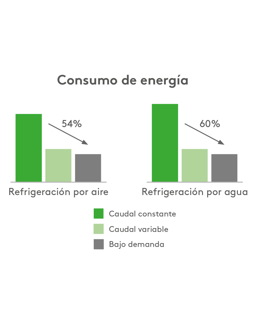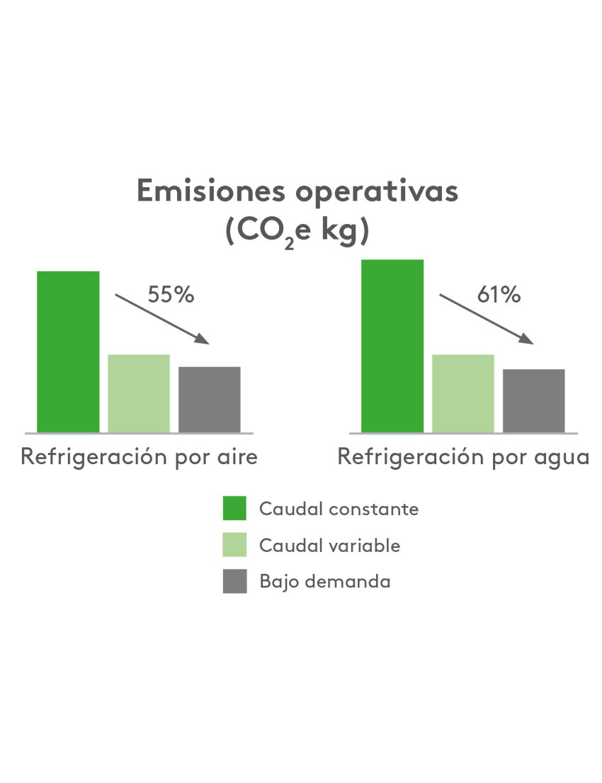Un menor consumo de energía se traduce en una huella climática menor. Con una solución en función de la demanda, las emisiones de CO2 pueden reducirse hasta en un 61 %, por lo que se convierte en una forma eficaz de contribuir a un futuro más sostenible.