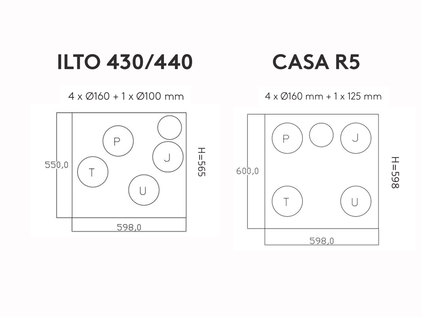 Huom. R5 on 33 mm korkeampi ja 50 mm syvempi kuin ILTO 440.