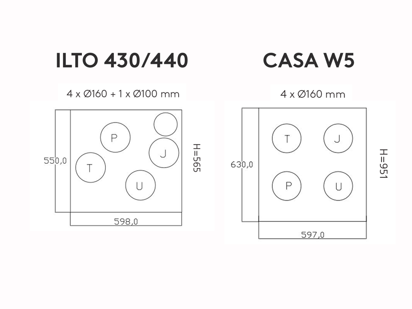 Huom. W5 on 386 mm korkeampi ja 80 mm syvempi kuin ILTO 430/440.