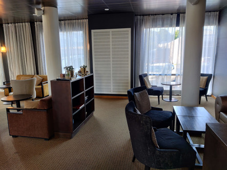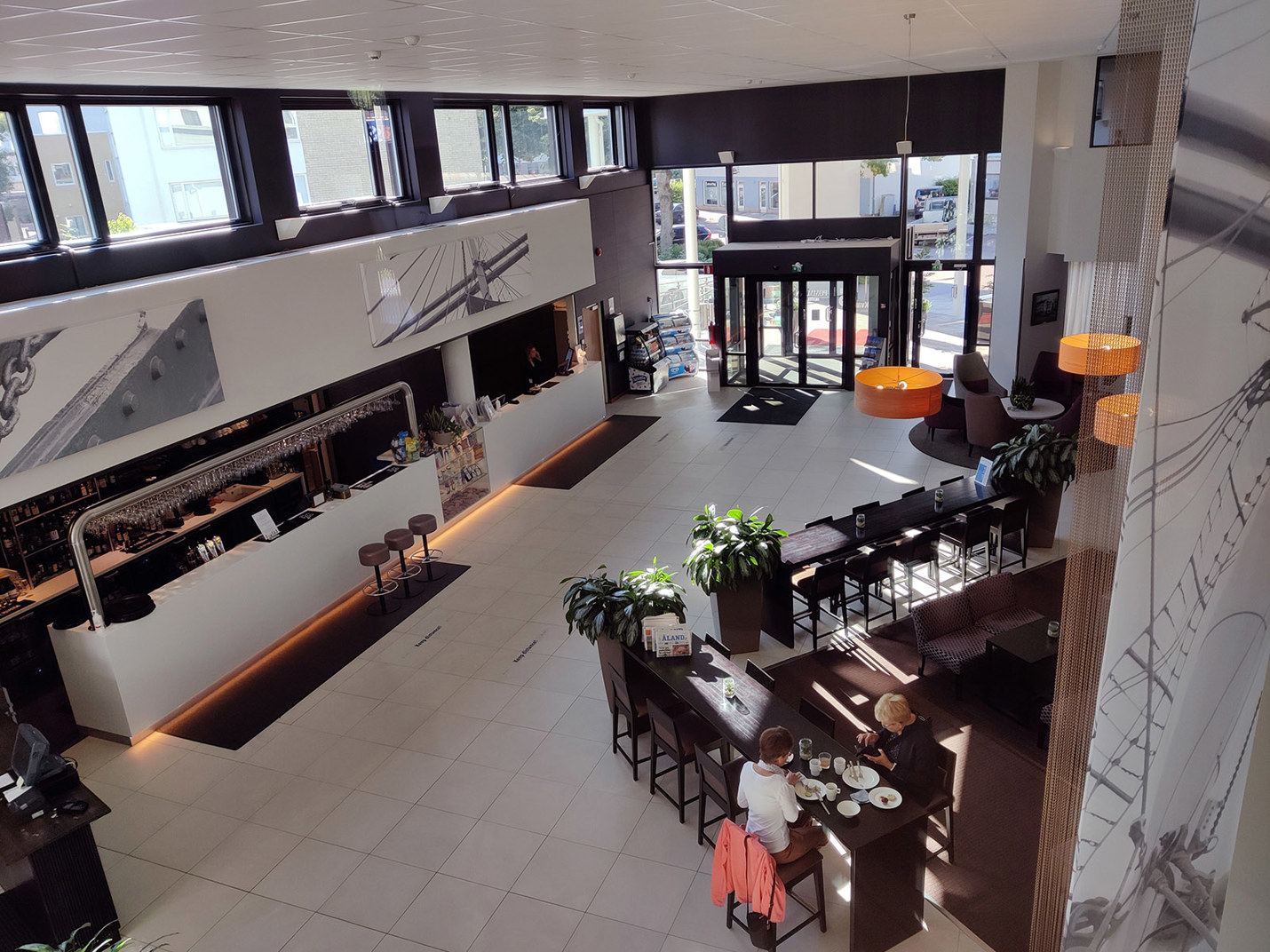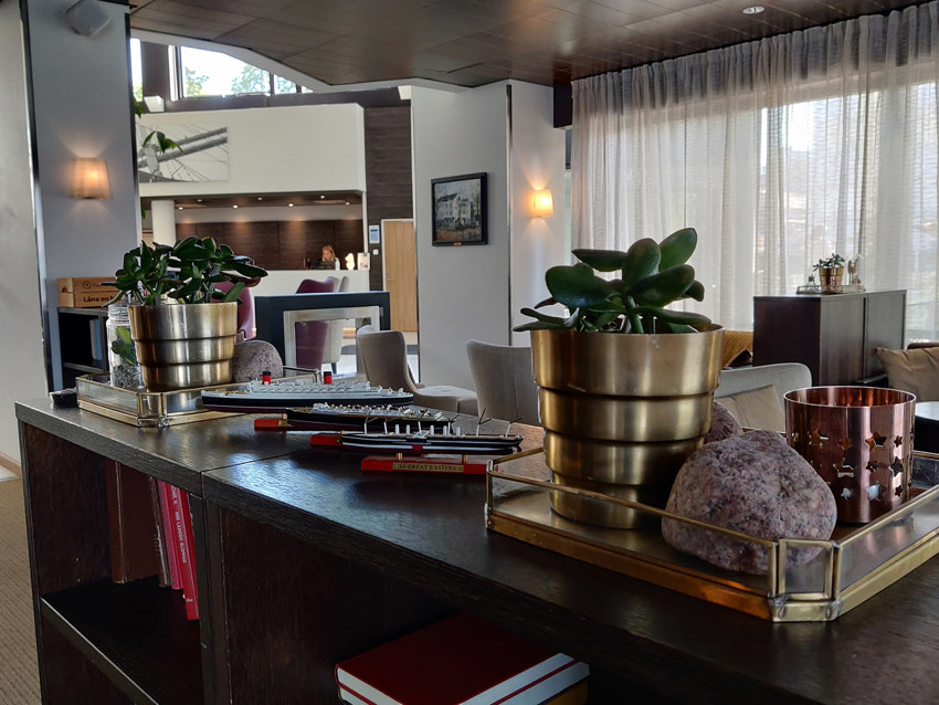 Viihtyisässä, meriaiheisesti sisustetussa ala-aulassa voi suunnitella tulevaa kävelykierrosta Maarianhaminan keskustassa tai pitää taukoa kesken yritystapahtuman.