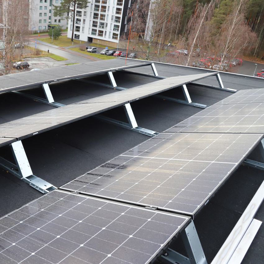 Mäntyläntie 3:n ja Peltolankatu 5:n kiinteistöihin toteutettiin iso aurinkopaneelikenttä, mikä takaa energiaomavaraisuuden ja -tehokkuuden - se parantaa osaltaan asumisviihtyisyyttä.