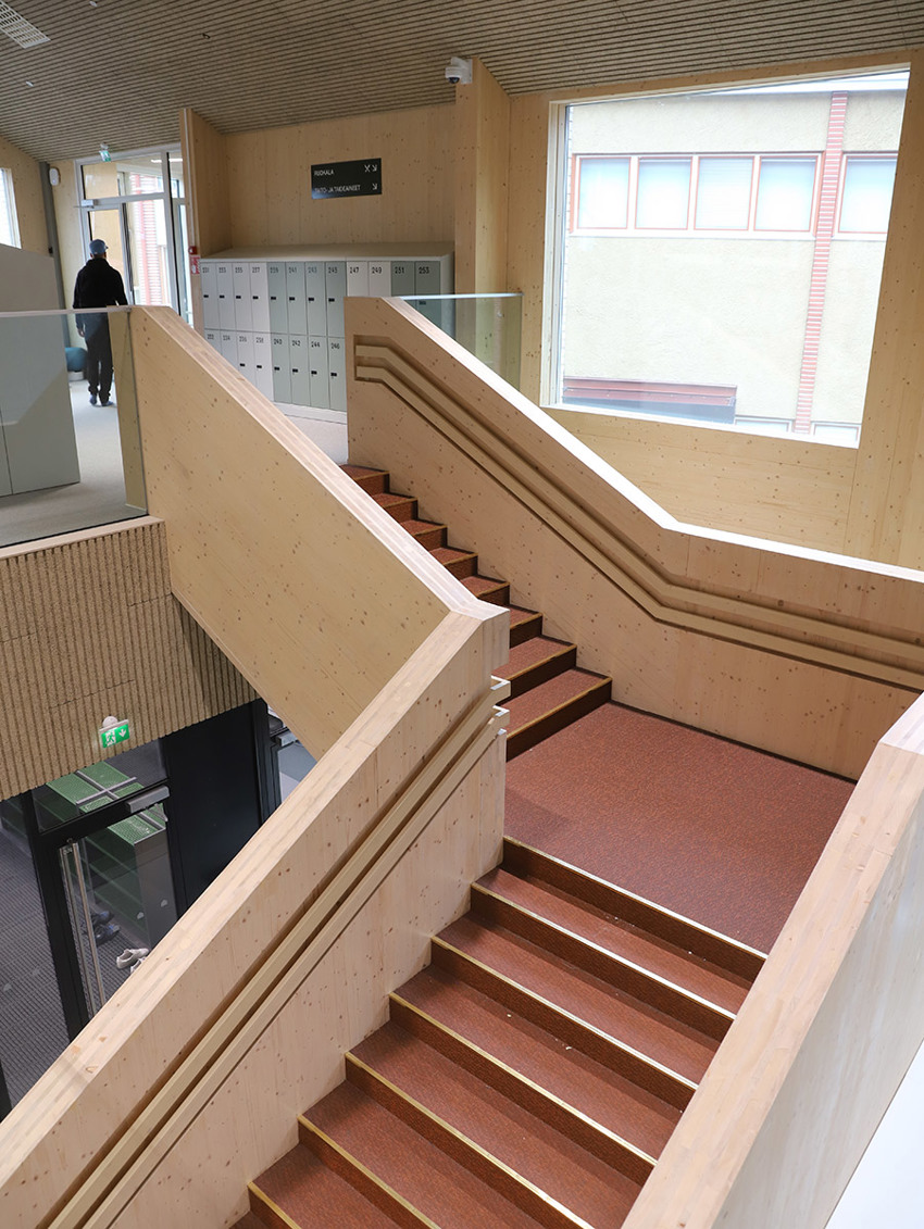 Lisäksi opetustiloihin kaivattiin lisää muunneltavuutta, joka on tärkeää myös kiinteistön elinkaaren kannalta. Rakennejärjestelmällä, taloteknisillä asennuksilla ja tilasuunnittelulla mahdollistetaan huonetilojen myöhempi uudelleenjärjestäminen, jos toiminta muuttuu.