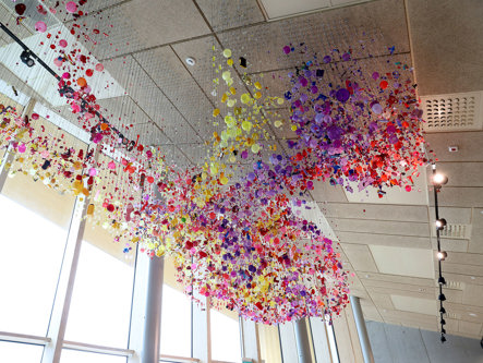 Toisen kerroksen katossa olevaa, taiteilija Hanna Vihriälän Sydän-teosta voivat ohikulkijatkin ihailla kadulta.
