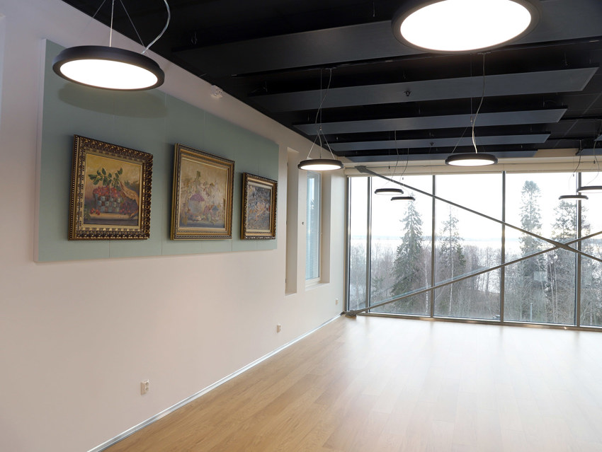 Perinteistä kuvataidetta on esillä esimerkiksi sairaalan ravintolassa. Merimaisemien lisäksi aterioinnin yhteydessä voi nauttia Fritz Jakobssonin maalauksista.
