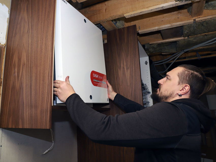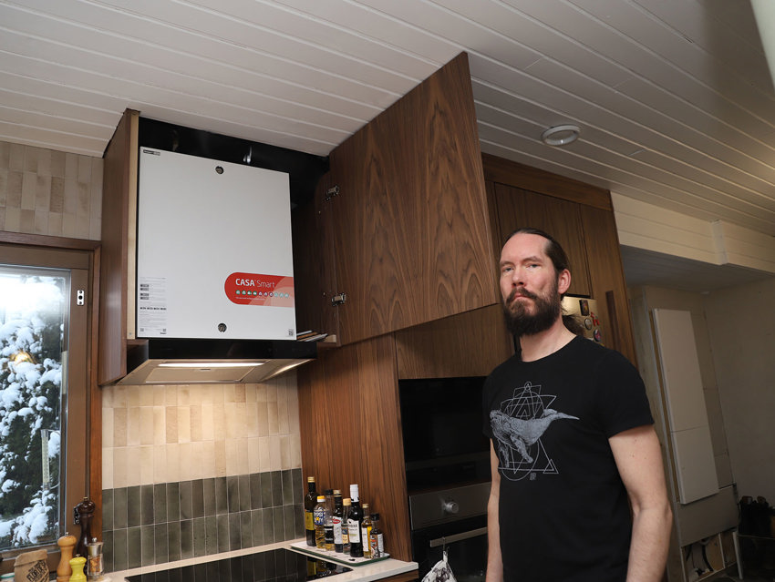 Projektia lähti suunnittelemaan LVI-asentaja Niko Salo, joka suositteli ratkaisuksi Swegonin CASA R3 Smart -laitetta. R3 on pyörivällä lämmönsiirtimellä varustettu kone, joka soveltui haluttuun paikkaan, koska laite tarvittiin keittiöön lieden ja Swegon CASA Jazz -liesikuvun yläpuolelle. Lieden paikka siirtyi monta metriä vasempaan.