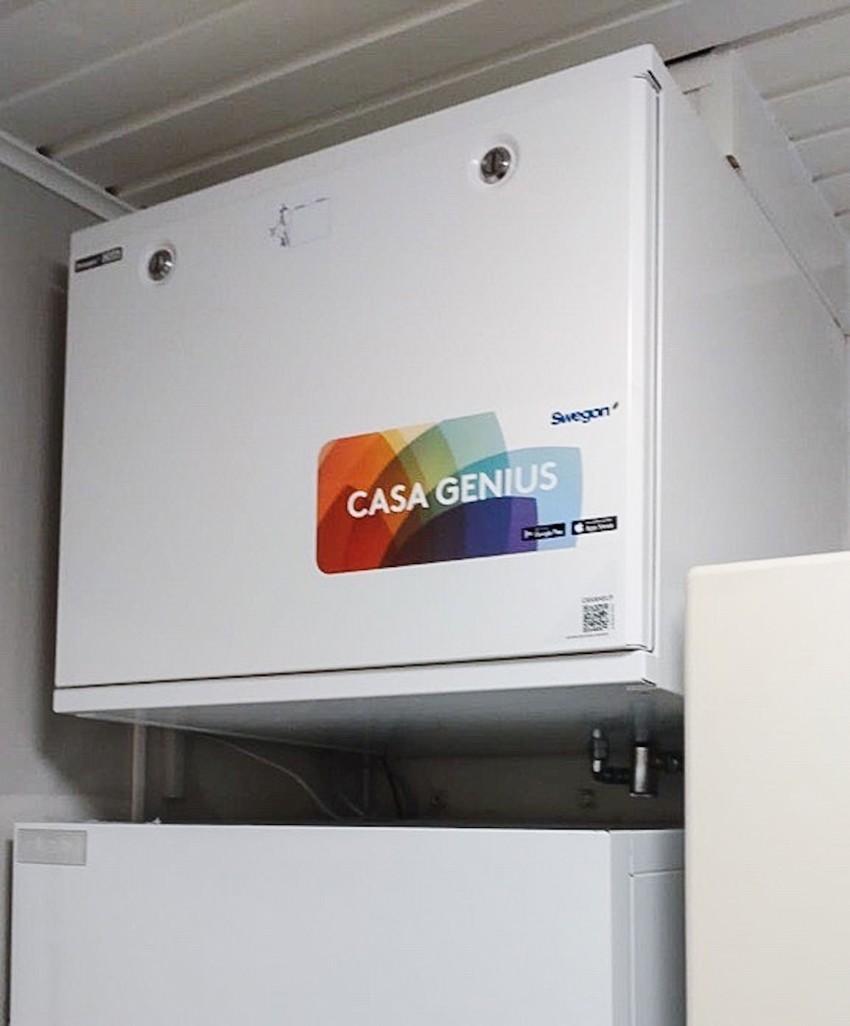 Swegonin Hiekko korostaa, että CASA Geniuksen suunnittelussa on huomioitu paljon; kosteusautomatiikka seuraa poistoilman kosteutta jatkuvasti ja jos nyt jostain syystä se pääsisi nousemaan liikaa, niin alkaa järjestelmä tehostamaan ilmanvaihtoa. Eli siitä ei tarvitse olla huolissaan.