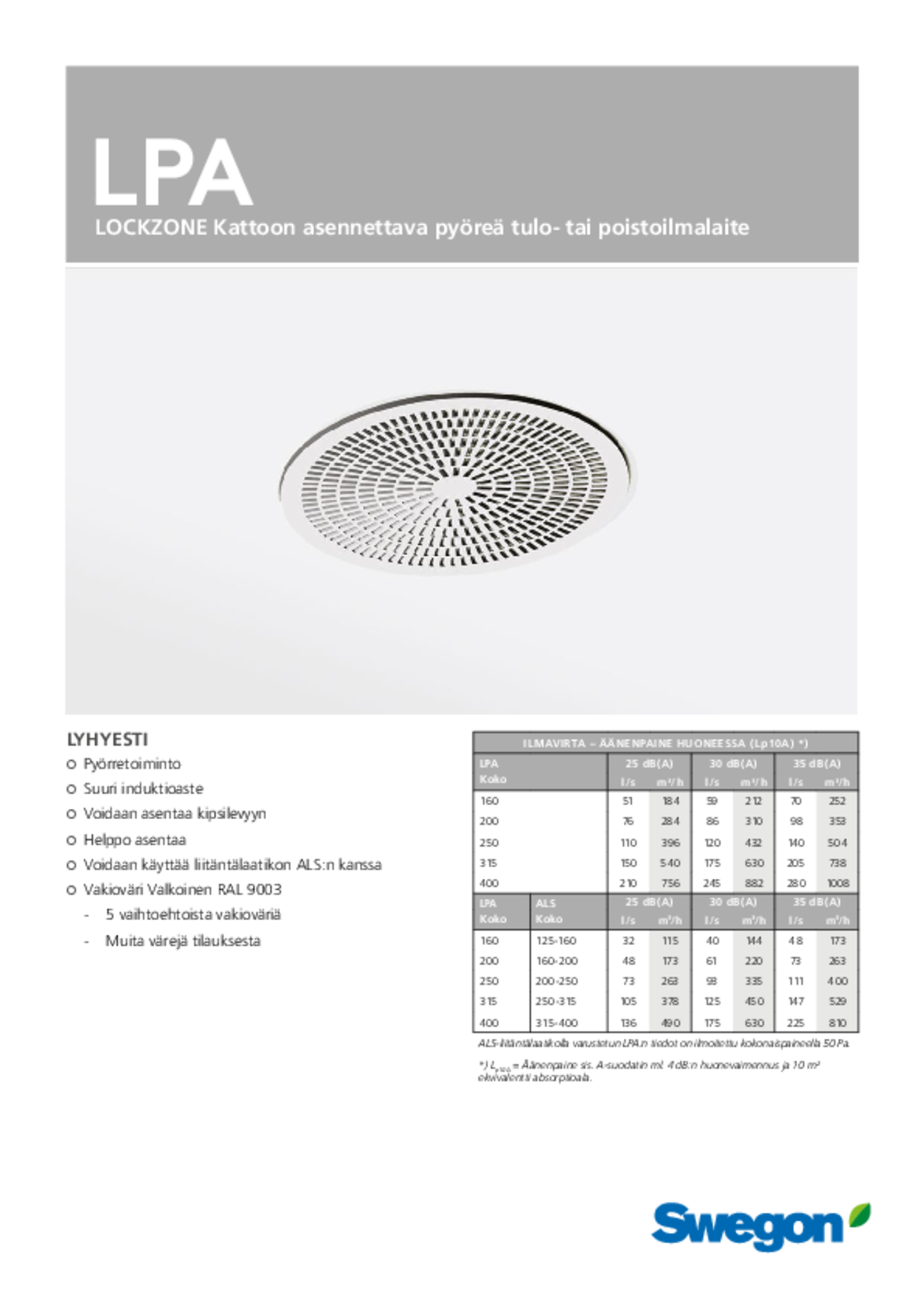 Pyöreä kattoon asennettava tulo- ja poistoilmalaite