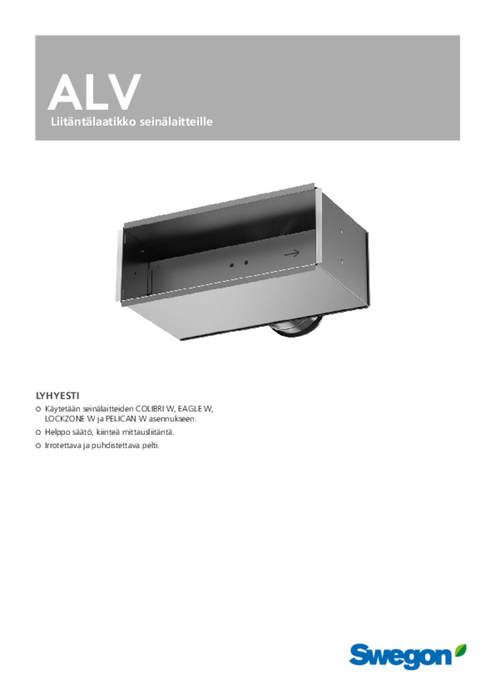 - Käytetään seinälaitteille. COLIBRI W, EAGLE W, LOCKZONE W ja PELICAN W