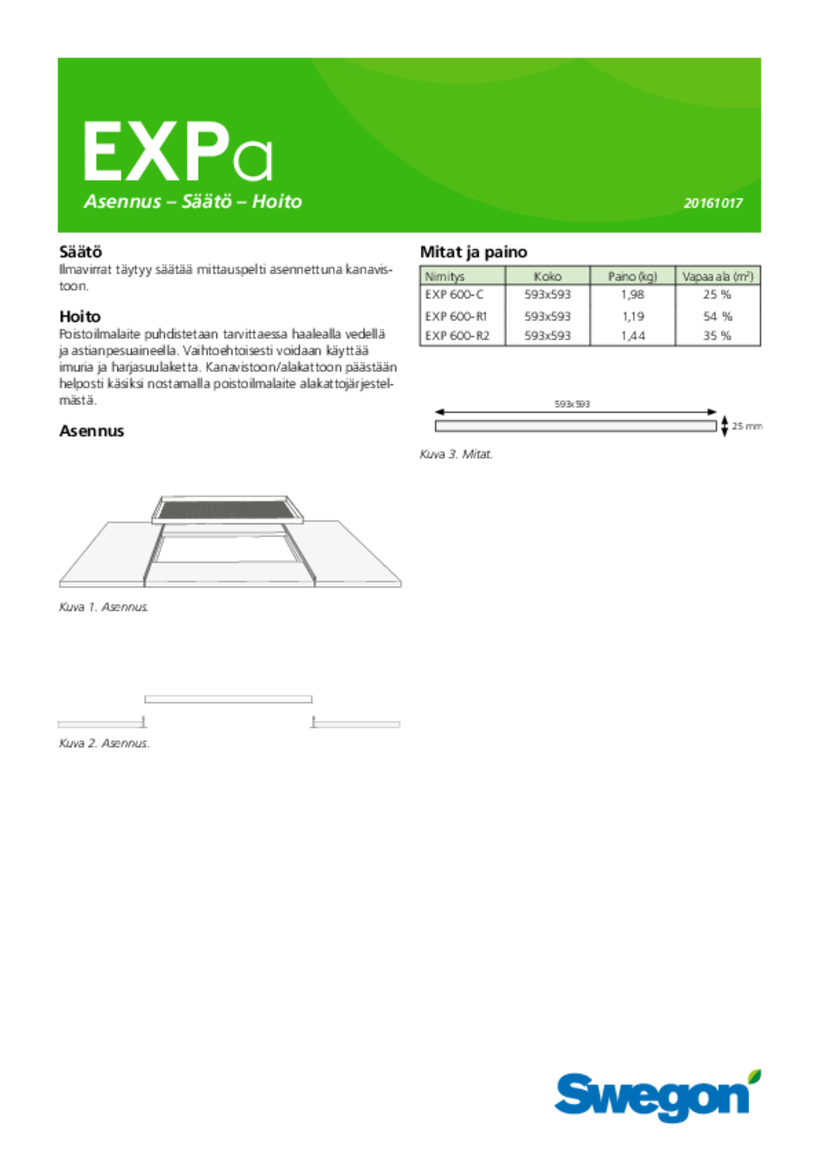 • Vakioväri valkoinen RAL 9003/NCS S 0500-N