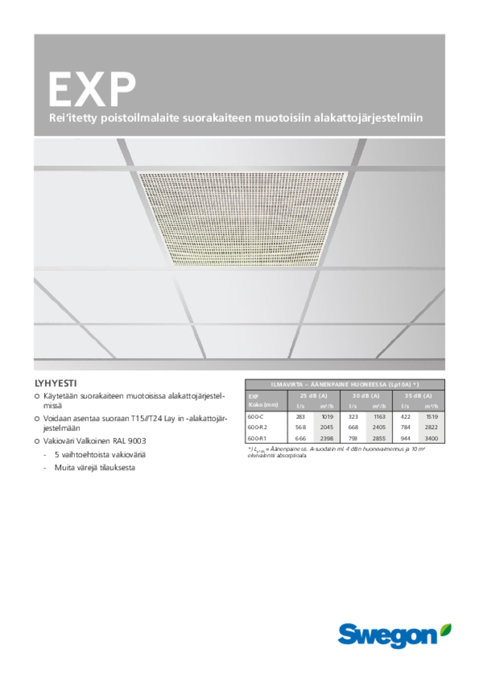 • Käytetään suorakaiteen muotoisissa alakattojärjestelmissä