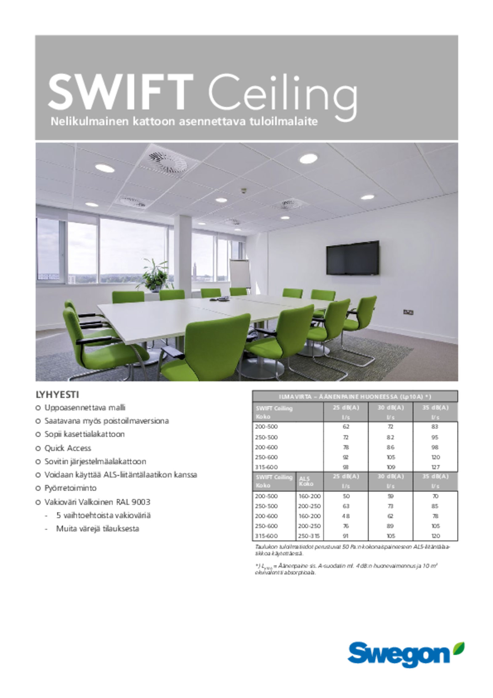 | SWIFT Ceiling Koko | ALS Koko | Â l/s | ||