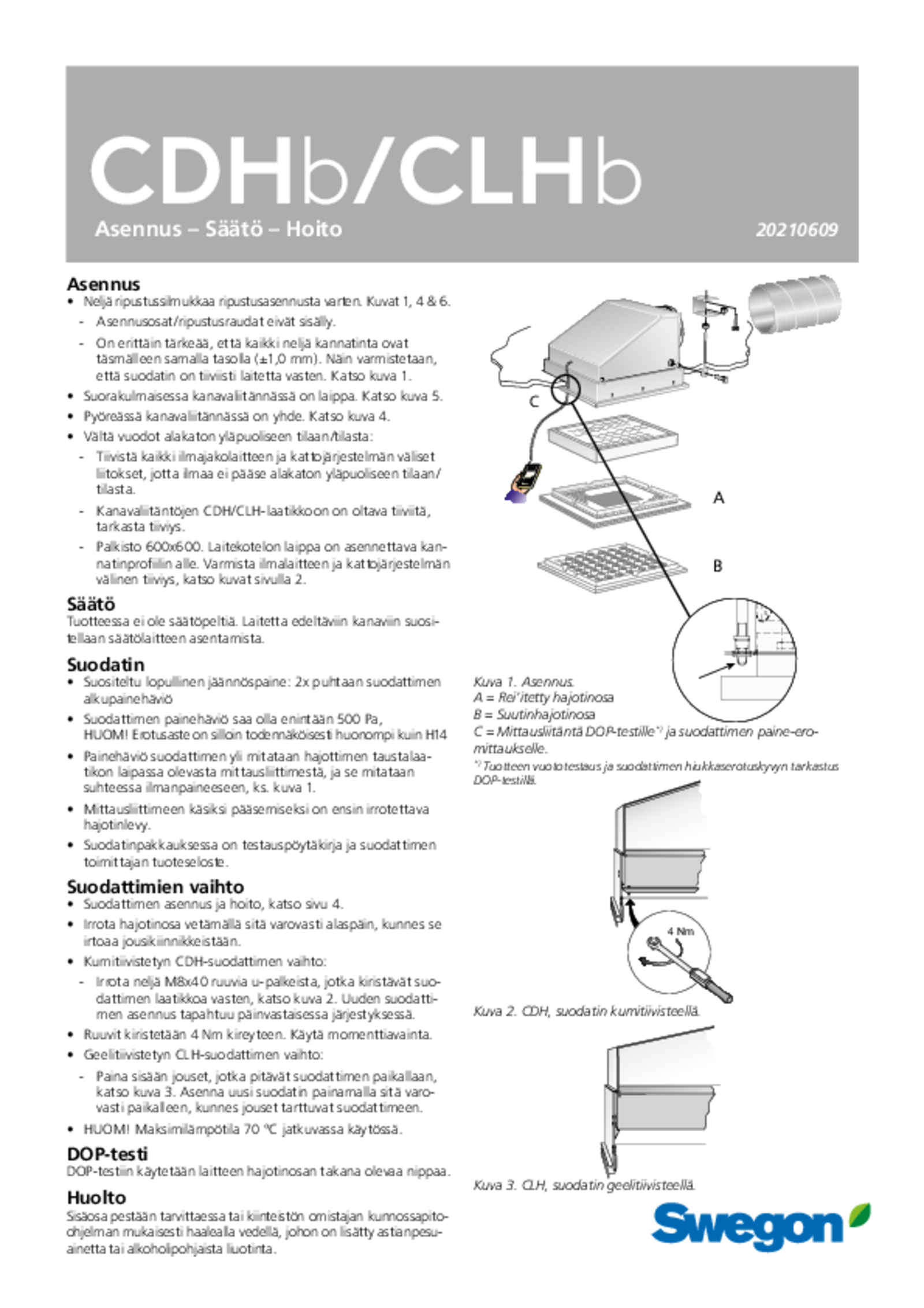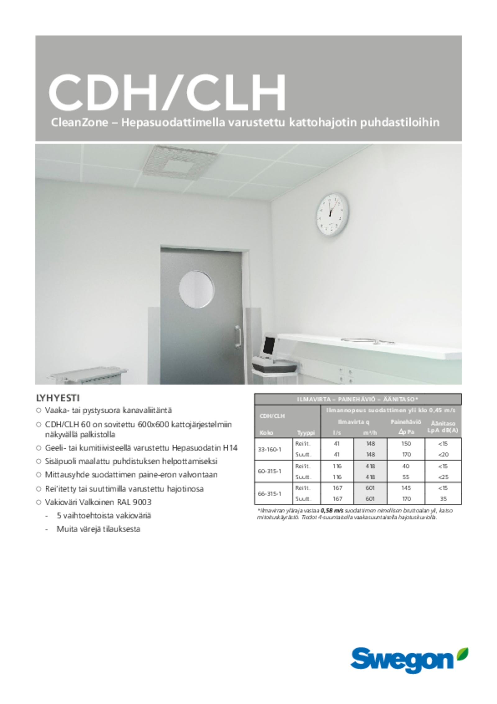- CDH/CLH 60 on sovitettu 600x600 kattojärjestelmiin näkyvällä palkistolla