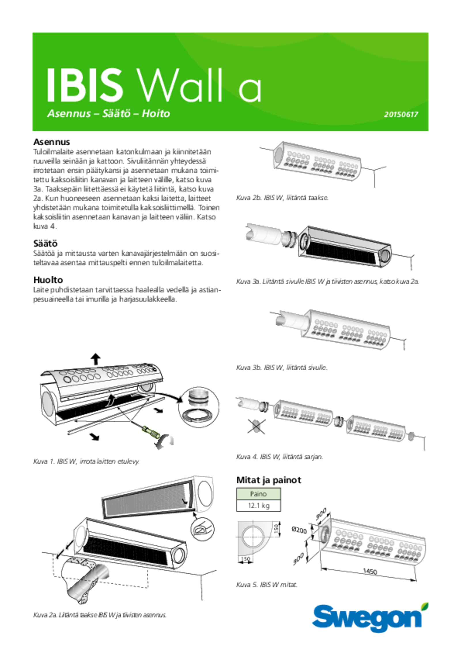 | Asennus, säätö, huolto (pdf 2.33MB) | IBIS Wall a | Asennus- ja huoltomanuaali | |