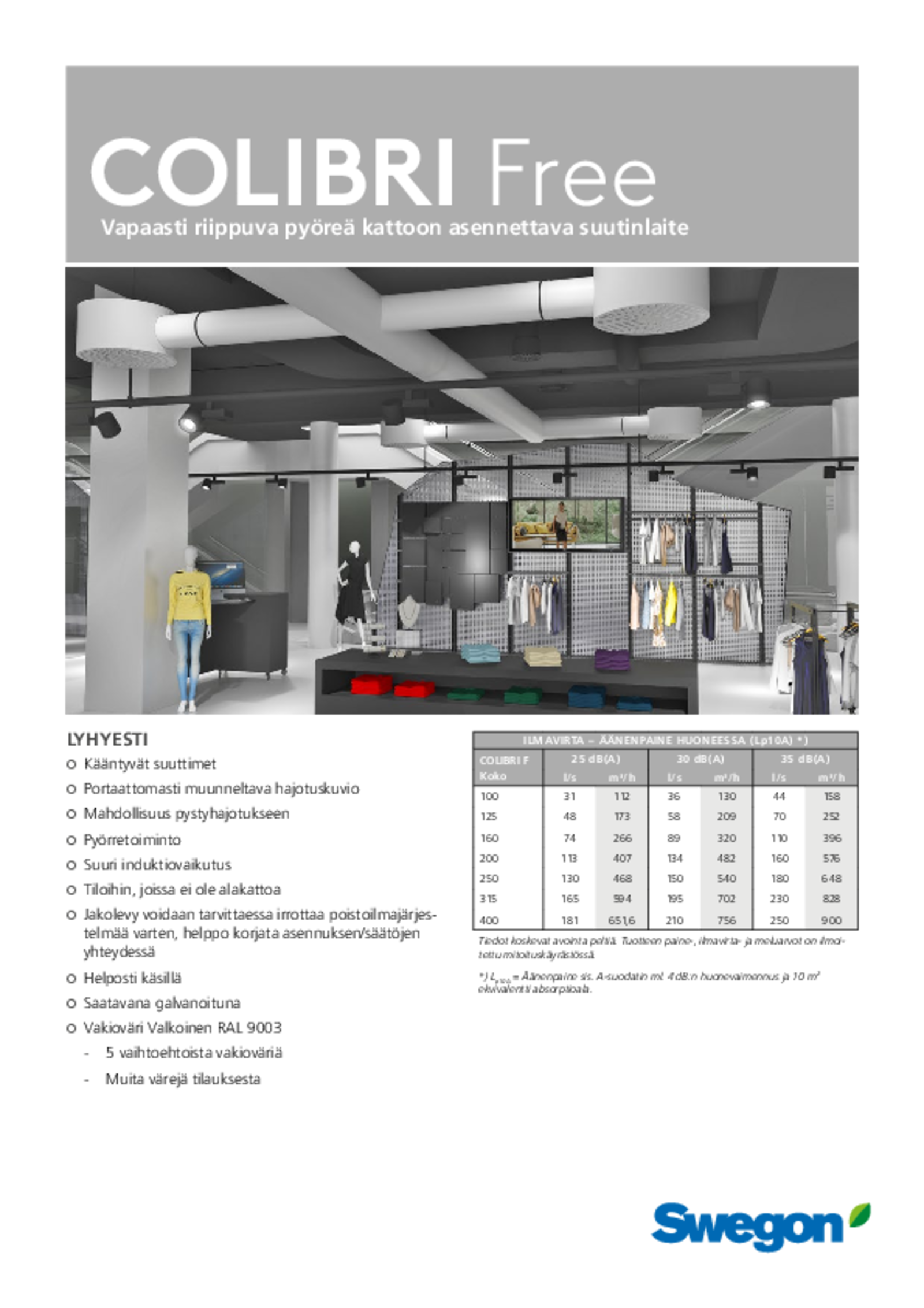 Vapaasti riippuva pyöreä kattoon asennettava suutinlaite