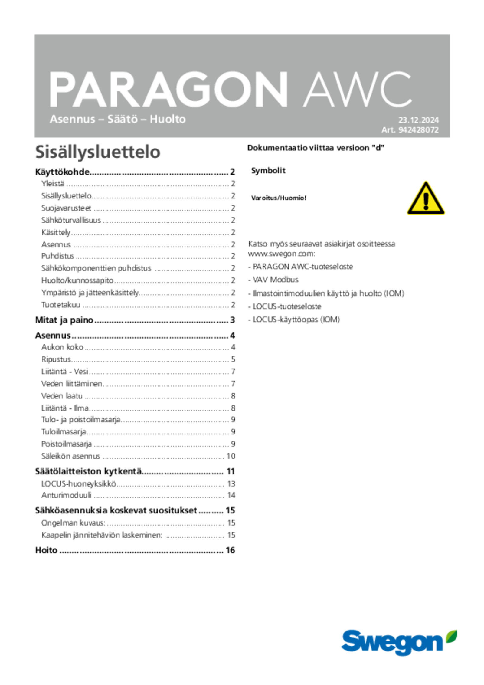 - Ilmanvaihto, jäähdytys ja lämmitys