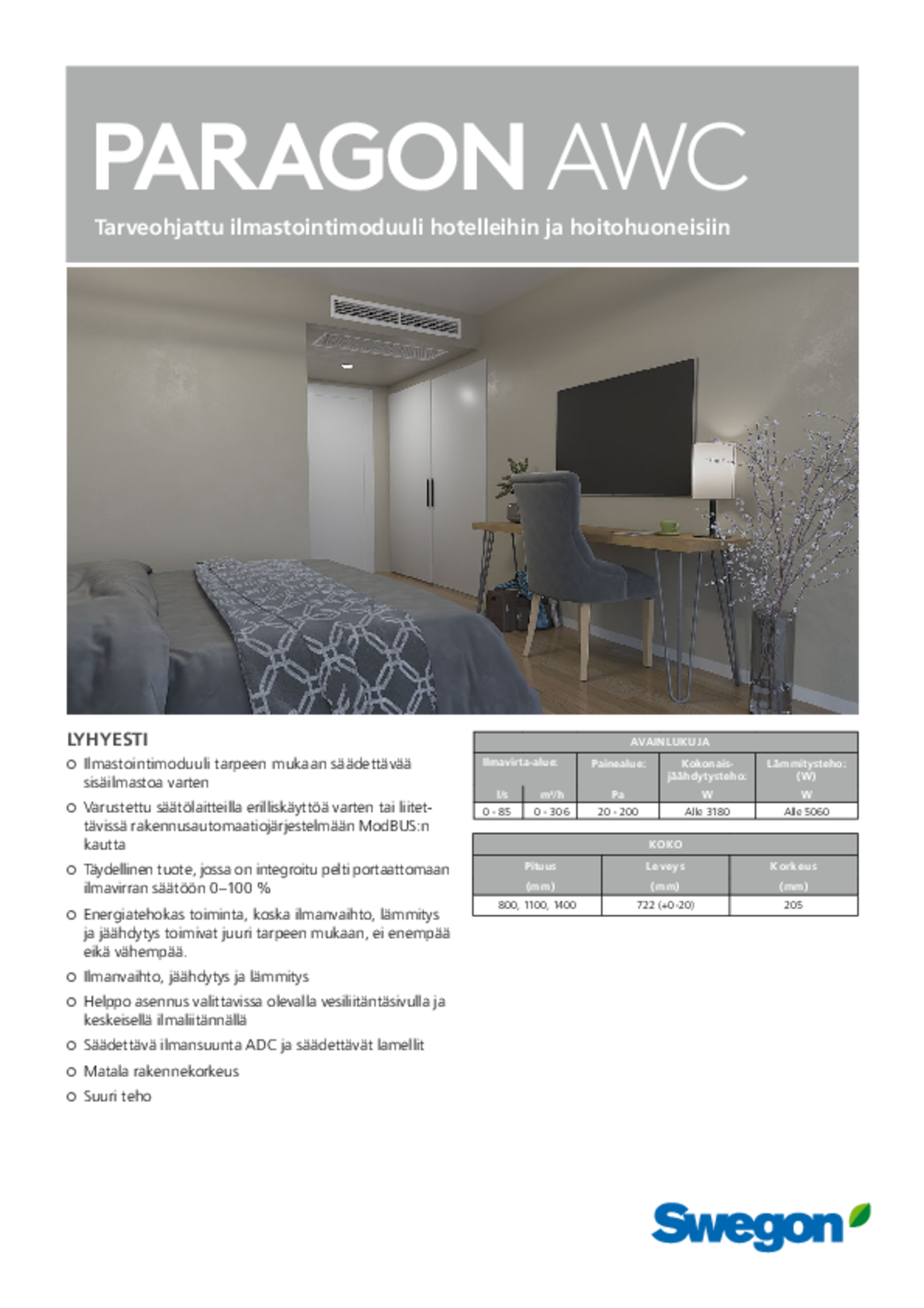 Tarveohjattu ilmastointimoduuli hotelleihin ja hoitohuoneisiin