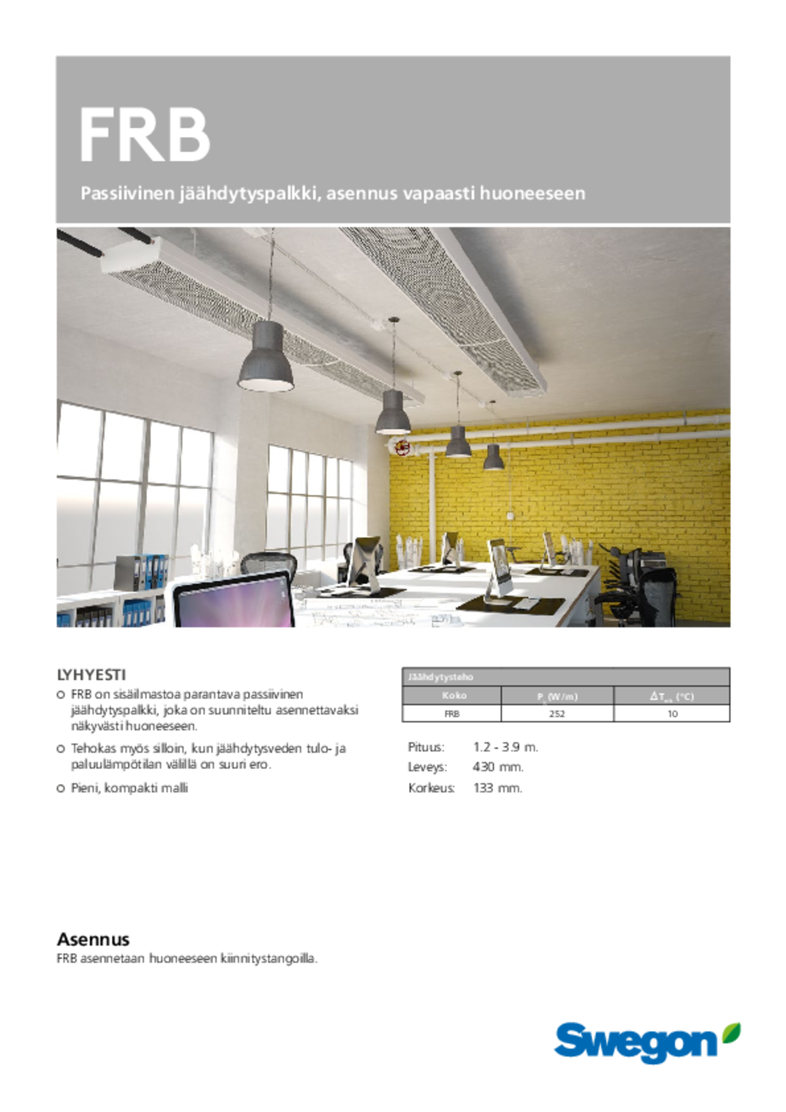 | Passiivinen jäähdytyspalkki, asennus vapaasti huoneeseen (pdf 733.55kB) | FRB c | Tekninen luettelo | |