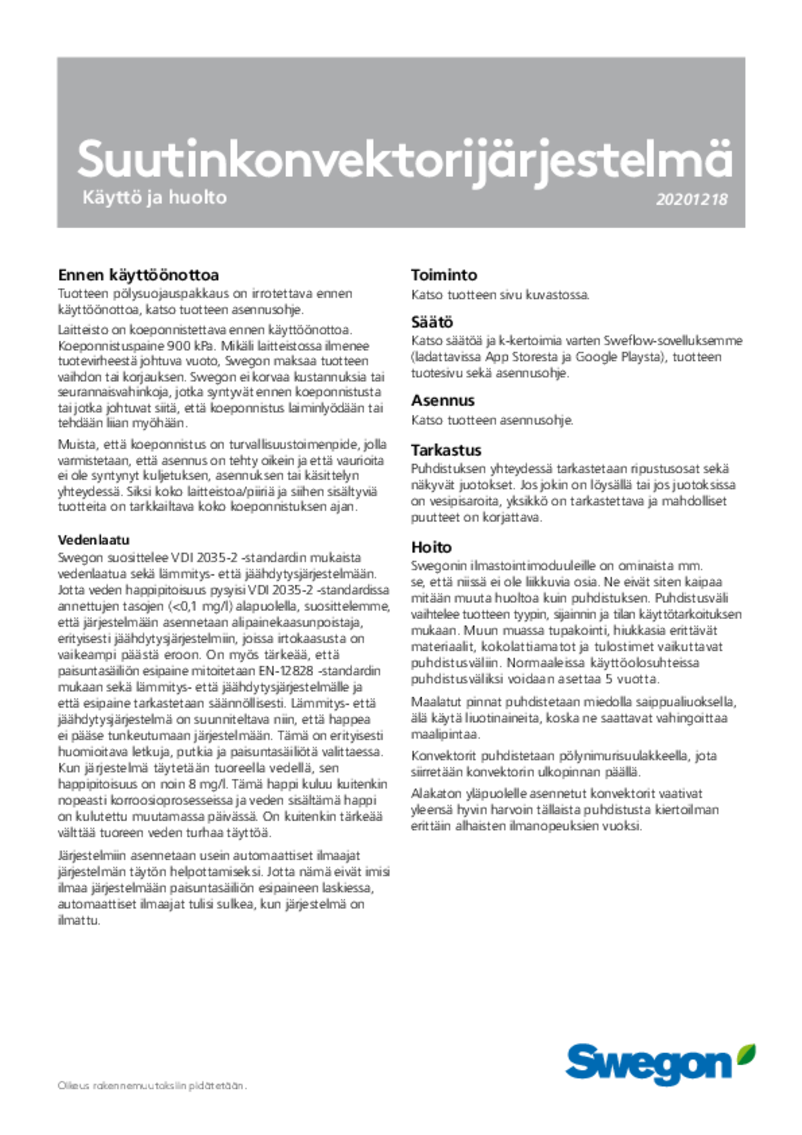 • Järjestelmässä ei ole lainkaan PVC:tä
