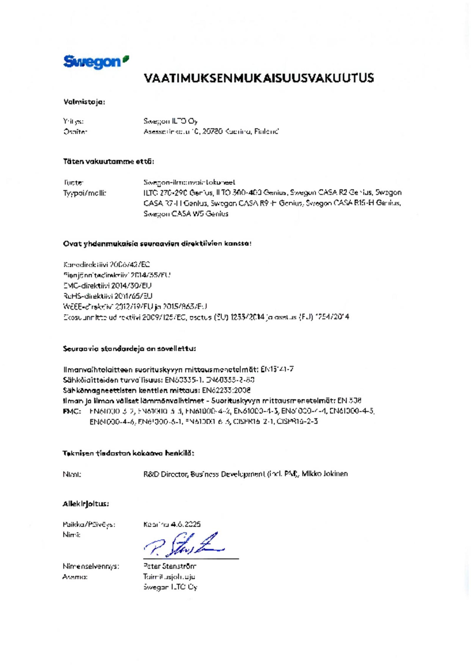 Koneella on kolmannen osapuolen sertifioima EPD-ympäristöseloste ja LCA-elinkaarilaskelma.
