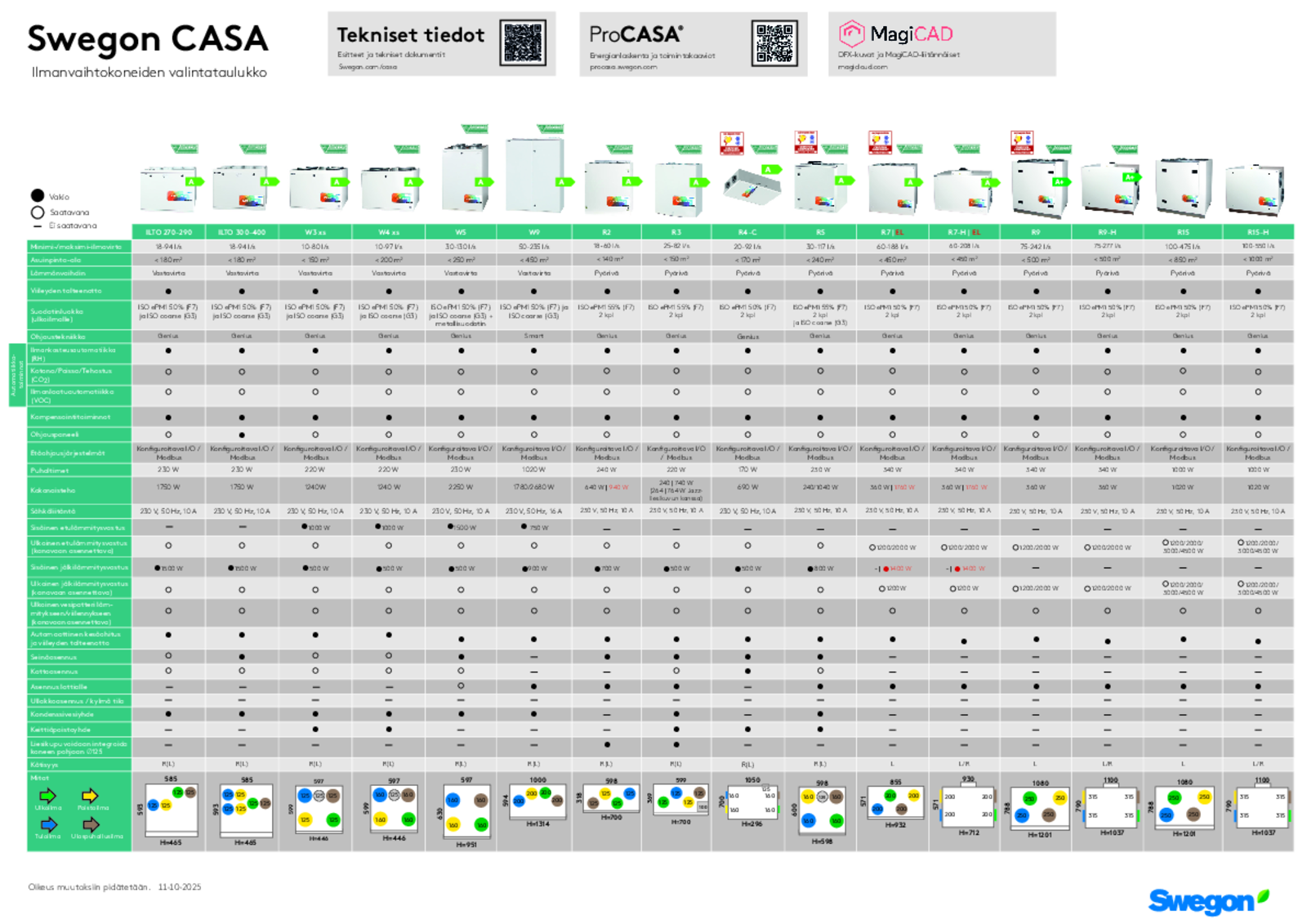 | Swegon CASA -ilmanvaihtokoneiden valintataulukko (pdf 844.01kB) | GENIUS | Esite | |