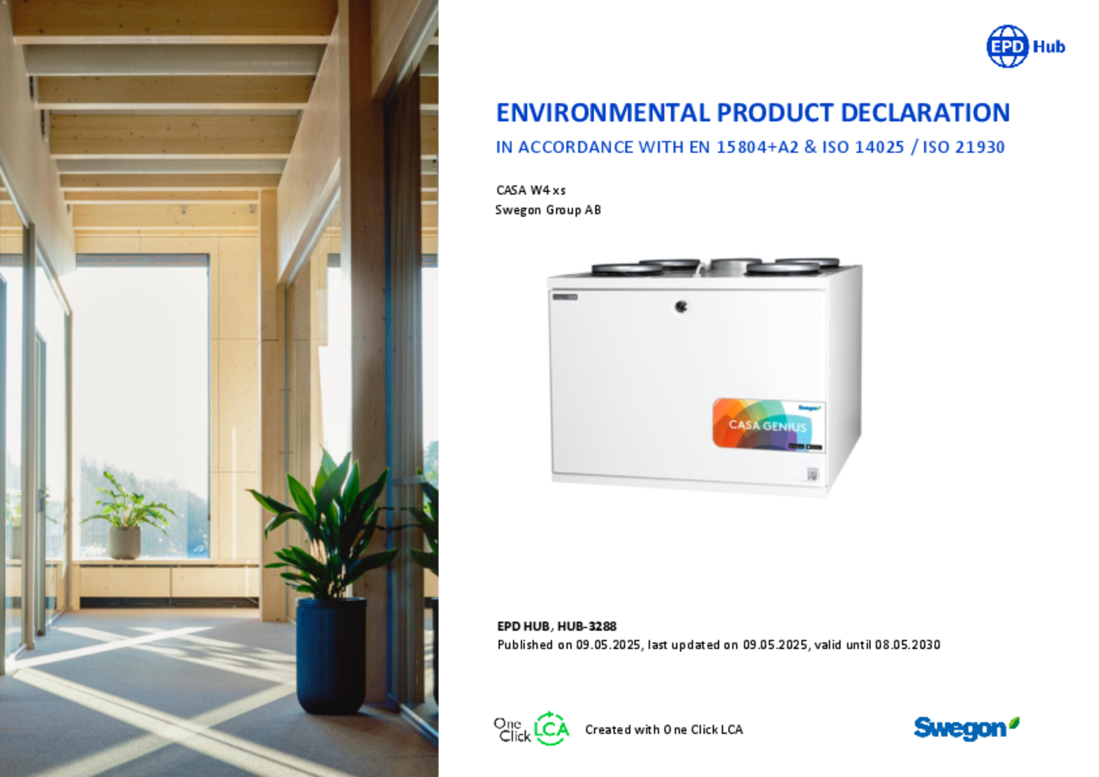| EPD-ympäristöseloste (pdf 918.96kB) | Swegon CASA | Laatuasiakirja | |