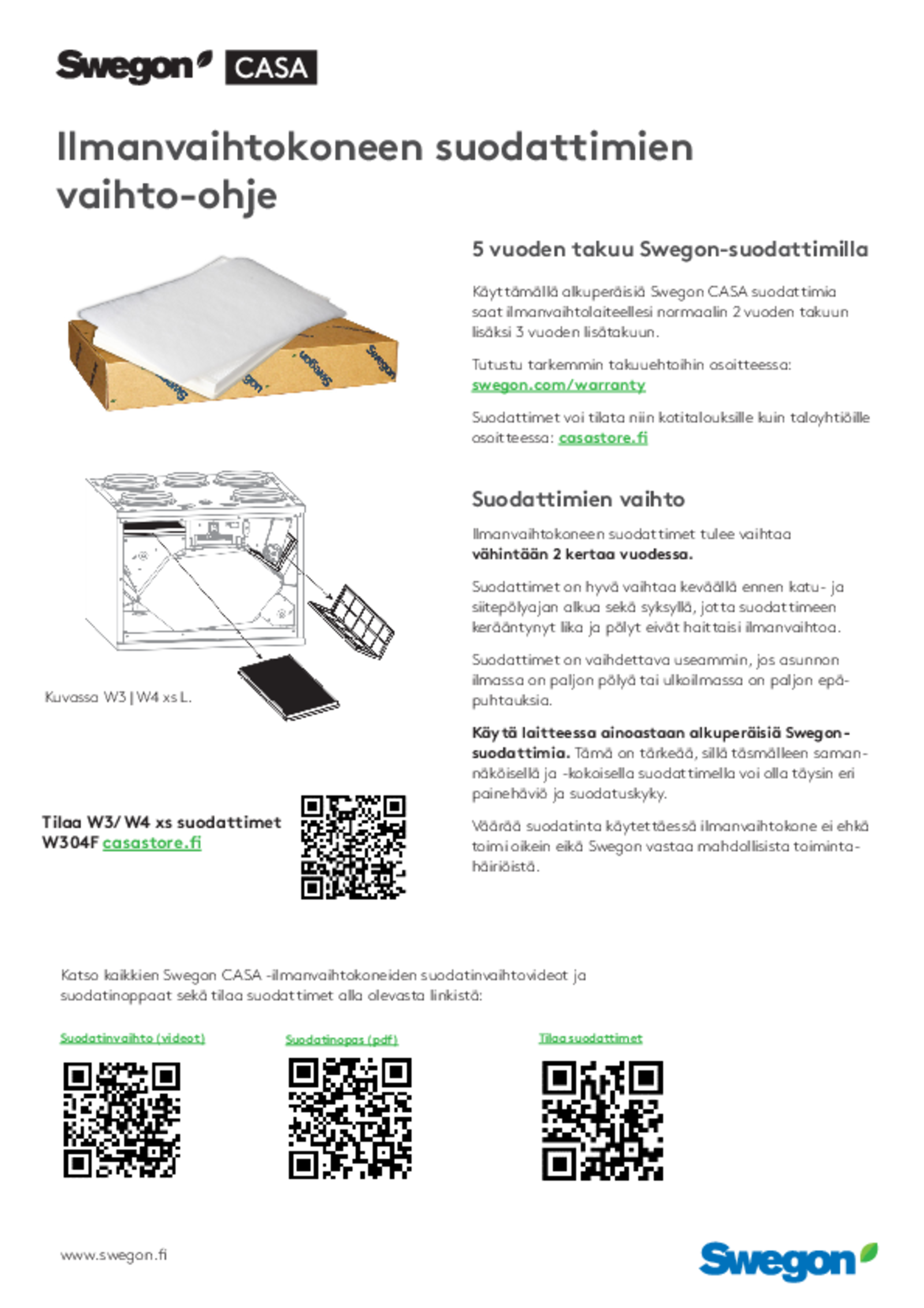 | Suodattimen vaihto-ohje CASA-ilmanvaihtokoneisiin (pdf 140.86kB) | SMART / GENIUS | Asennus- ja huoltomanuaali | |
