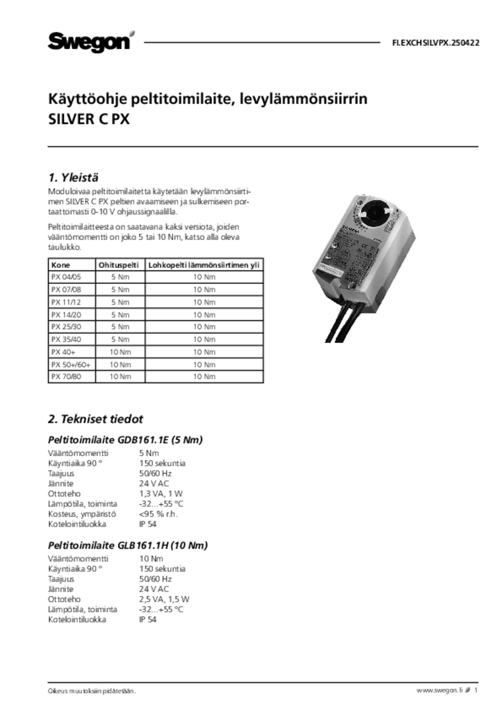 | Peltitoimilaitteen, levylämmönsiirrin (pdf 266.52kB) | SILVER C PX | Asennus- ja huoltomanuaali | |
