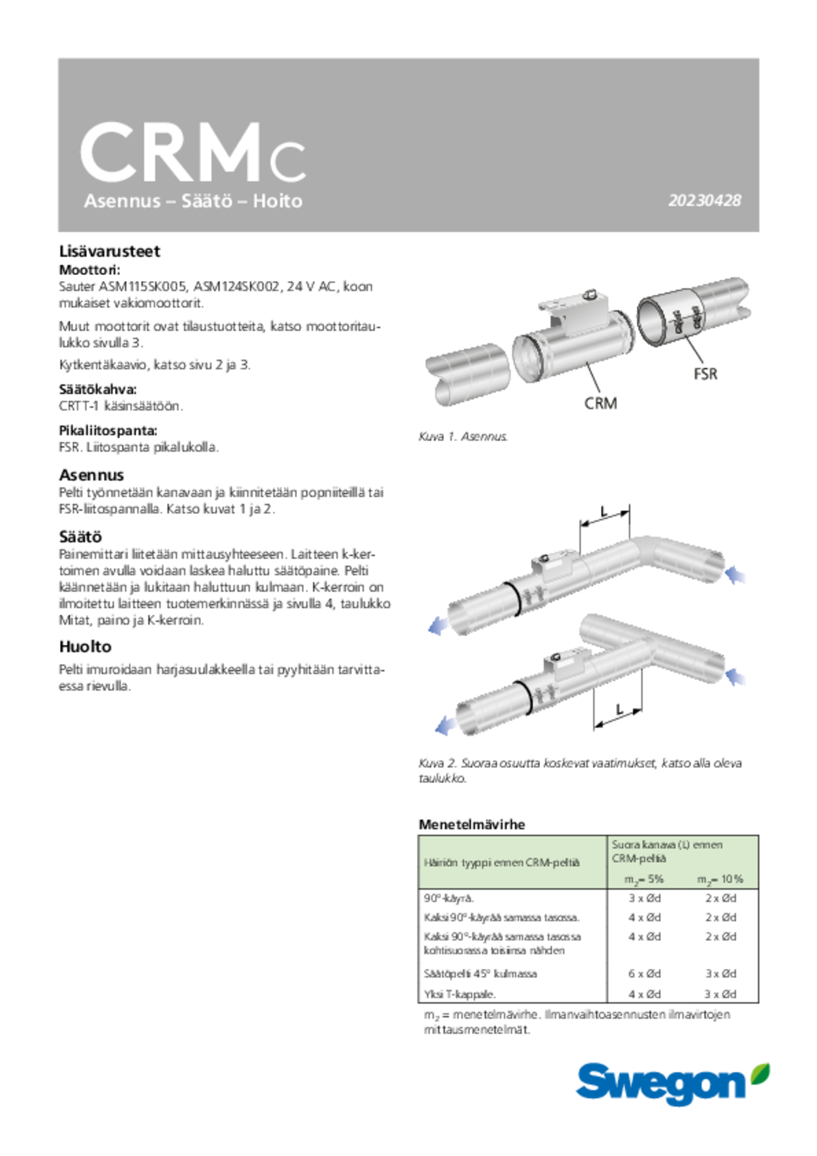 - Kotelon vuotokerroin on tiiviysluokan C mukainen