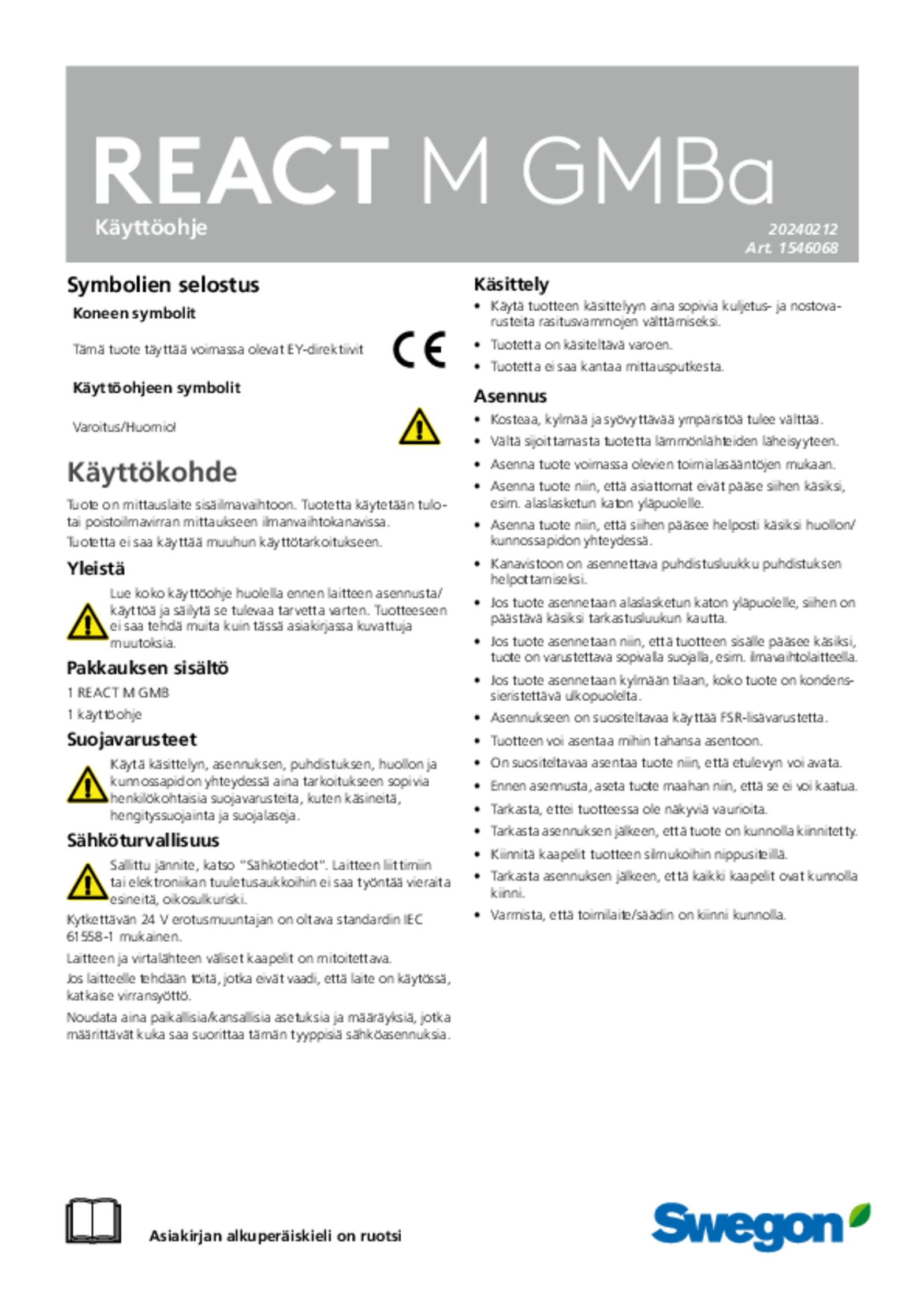 • Tarkoitettu ilmanvaihdon mittaamiseen.