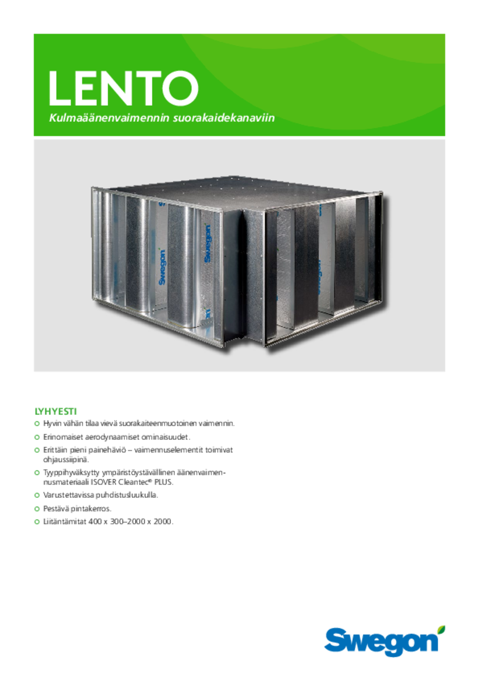 Erinomaisen muotoilun ja sivuliitännän ansiosta LENTO voidaan liittää sekä kanavaan, että suoraan ilmankäsittelykoneeseen.