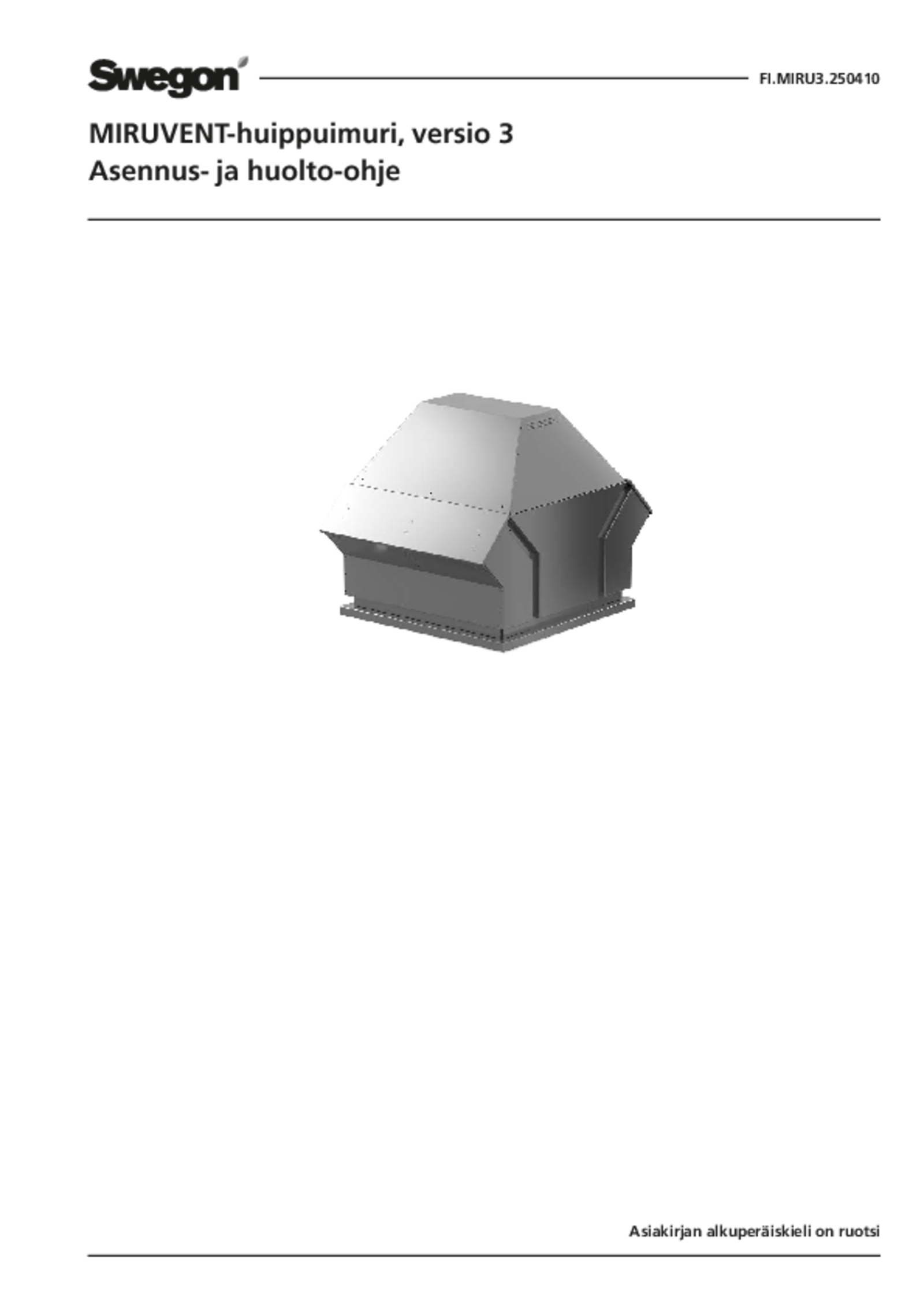 MIRUVENT-huippuimurin kotelo on korroosionkestävää alumiinia. Huippuimurista on saatavana 5 eri kokoa, joissa on 27 eri ilmavirtaversiota 6,7 m3/s saakka.