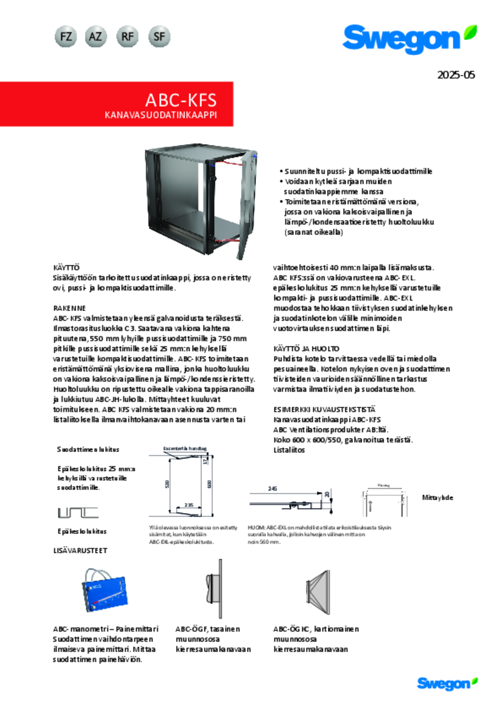 - Suunniteltu pussi- ja kompaktisuodattimille