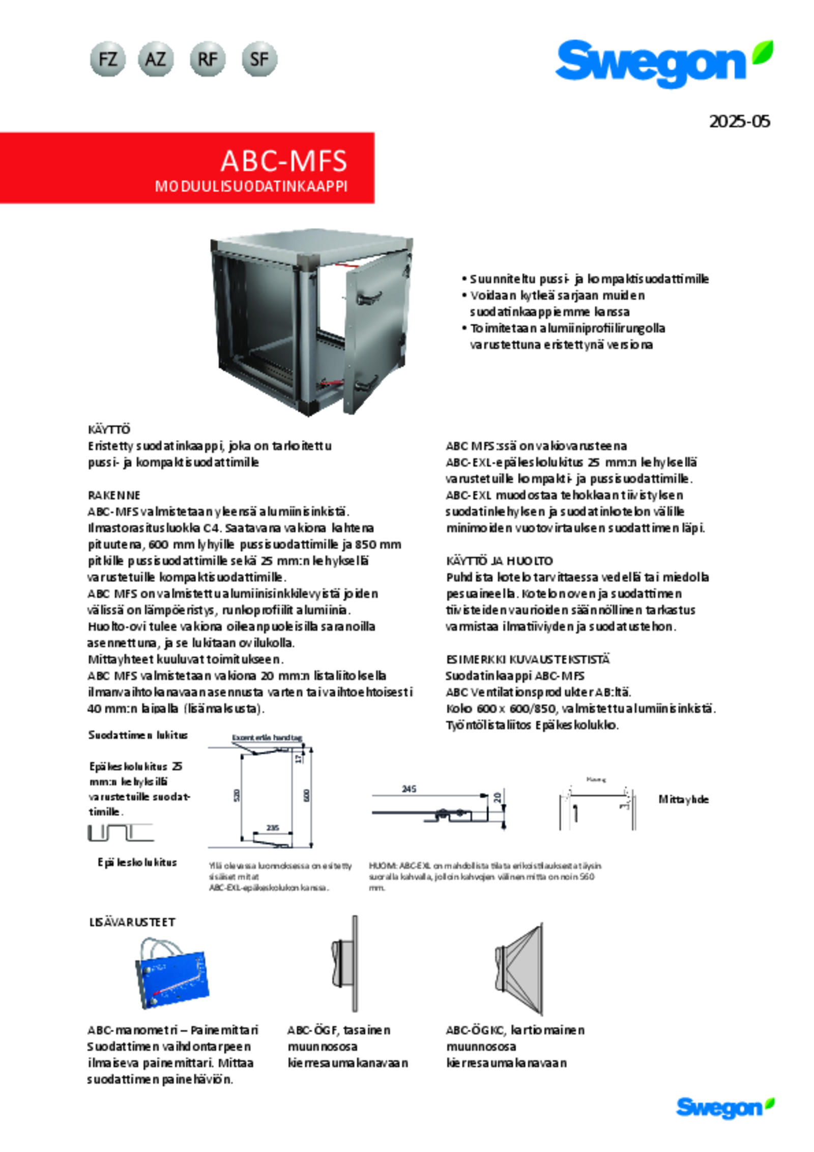 Moduulisuodatinkaappi (pdf 1.94MB) ABC-MFS Tekninen luettelo
