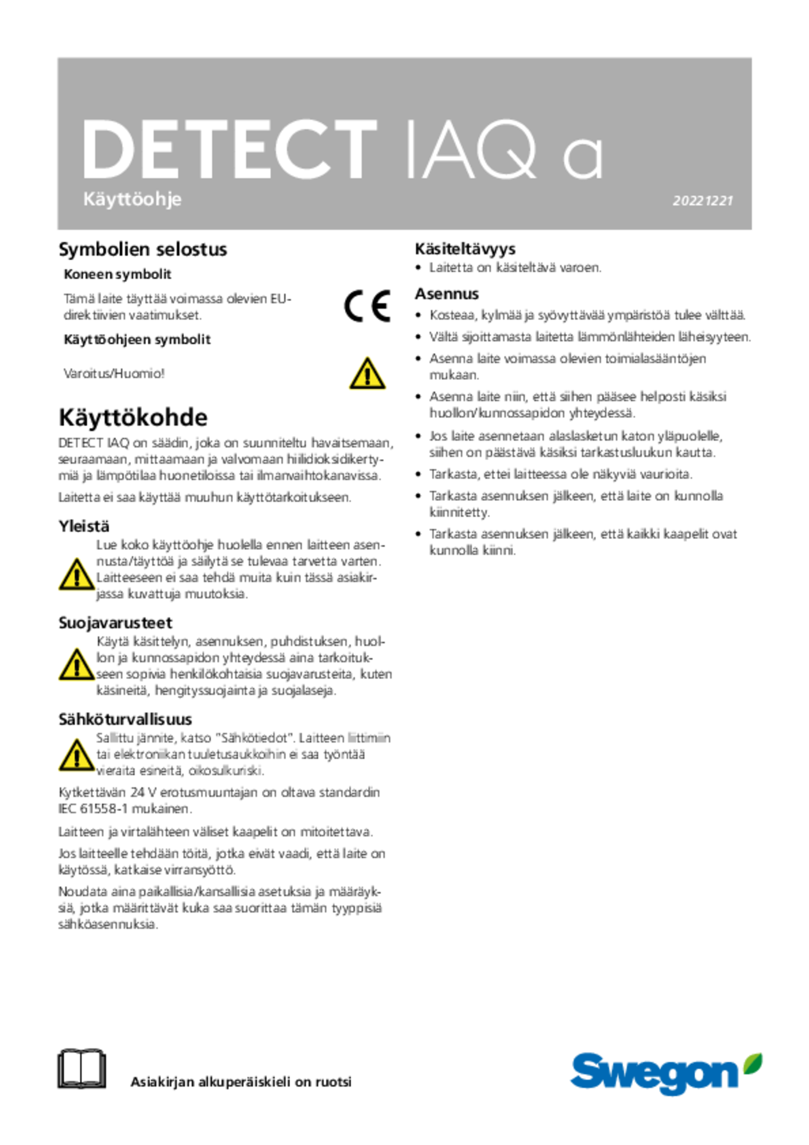 - DETECT IAQ: Mittaa ja valvoo hiilidioksidin kertymistä ja lämpötilaa huonetiloissa.