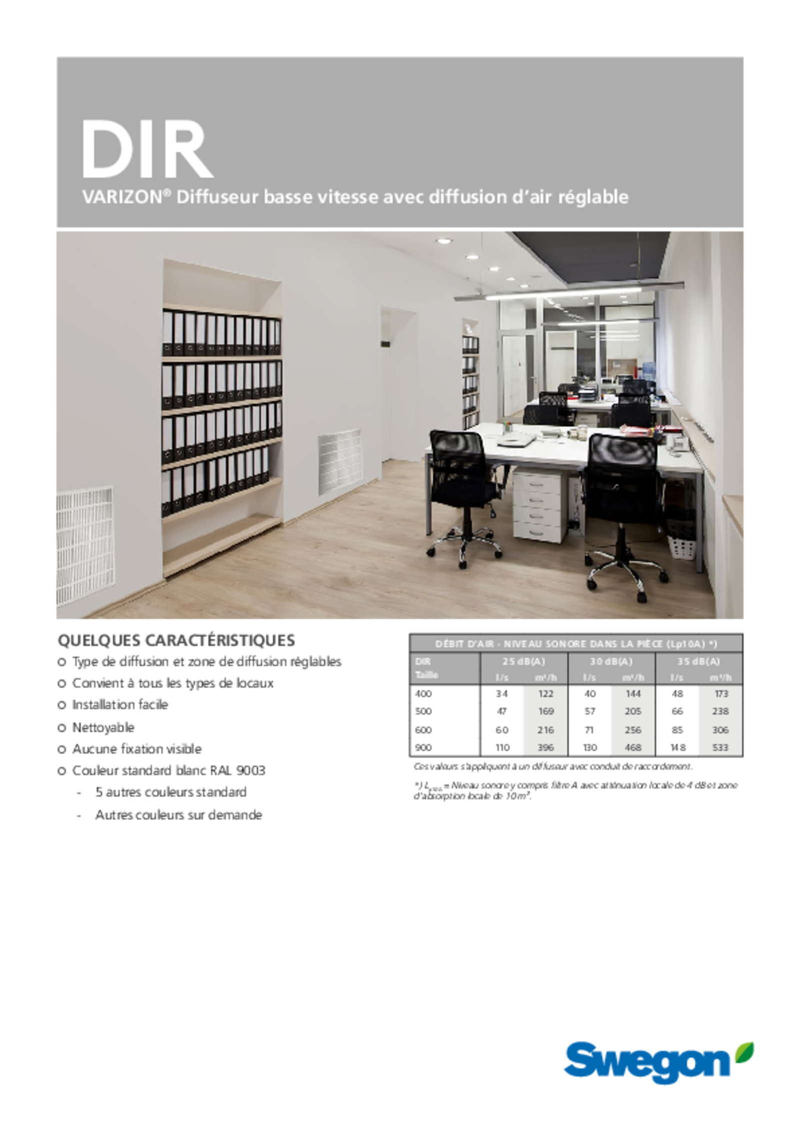 VARIZON® Diffuseur à déplacement d’air a motif de diffusion réglable