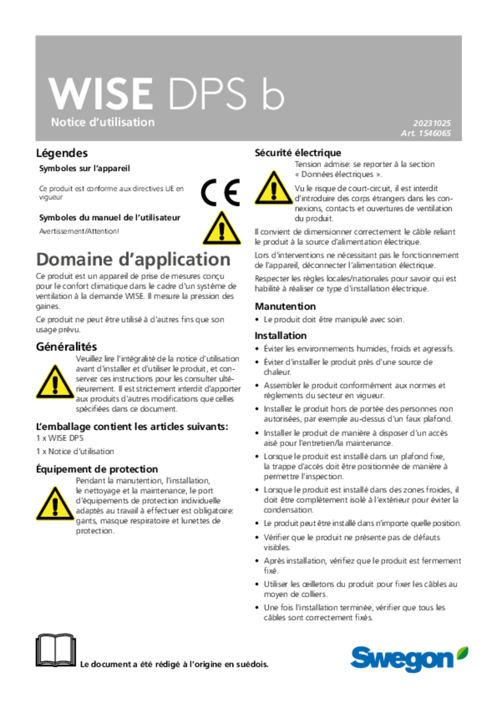 | Notice d’utilisation (pdf 1.24MB) | WISE DPS b | Instructions |