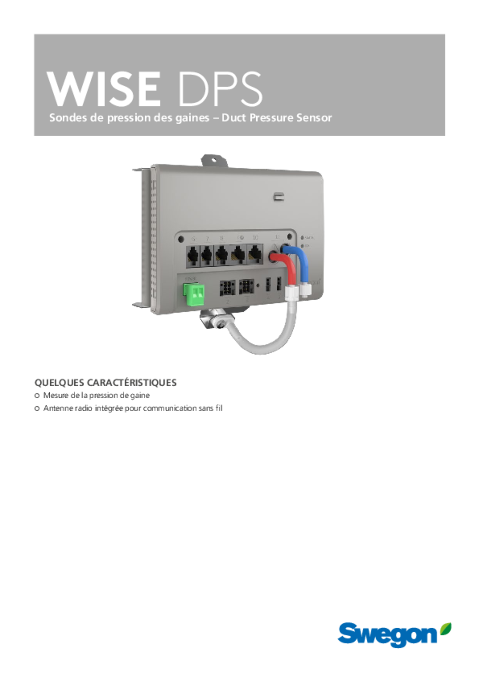 | Sondes de pression des gaines – Duct Pressure Sensor (pdf 599.14kB) | WISE DPS b | Brochure technique | |