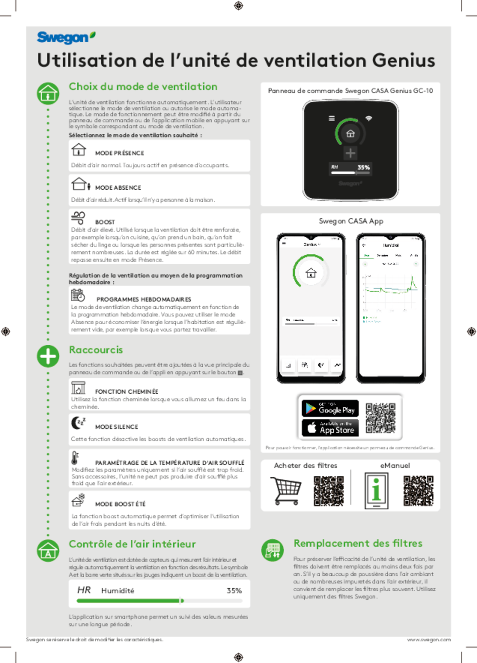 L'appareil de ventilation est piloté depuis le panneau de commande et via une application mobile (iOS/Android) et peut être connecté aux systèmes d'automatisation des bâtiments via Modbus.