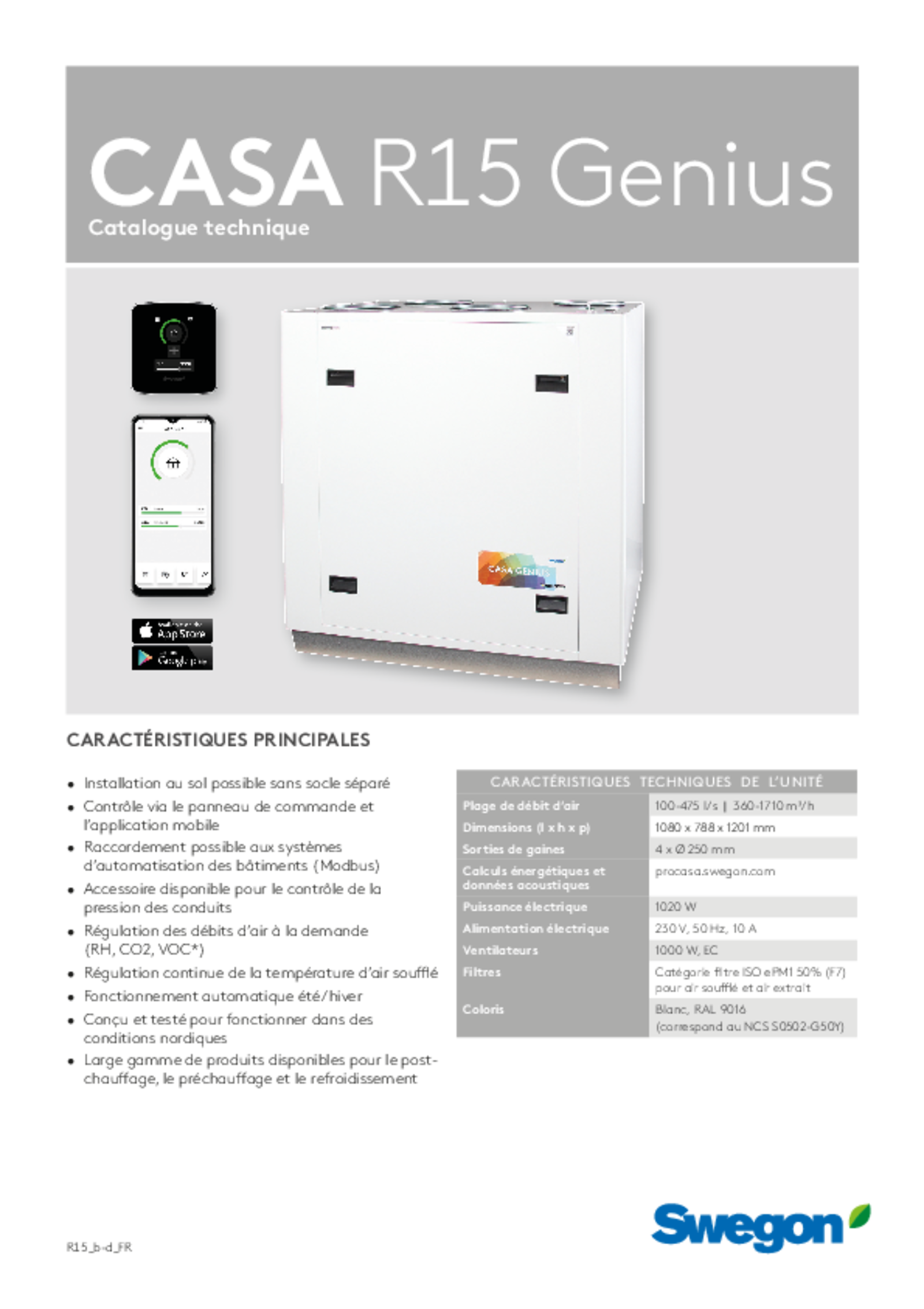 Le R15 est un appareil de ventilation adapté à la ventilation des grands appartements, des bureaux ou des salles de conférence.