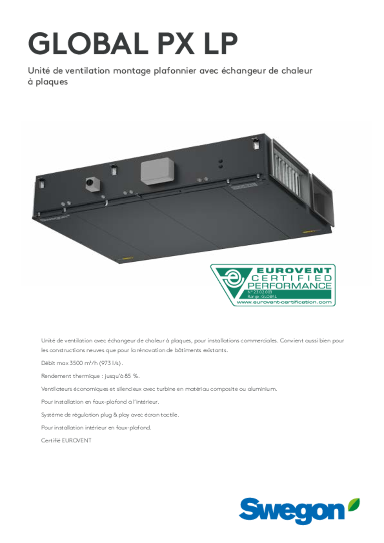 - Débit d’air max. 3.500 m³/h (Ecodesign)