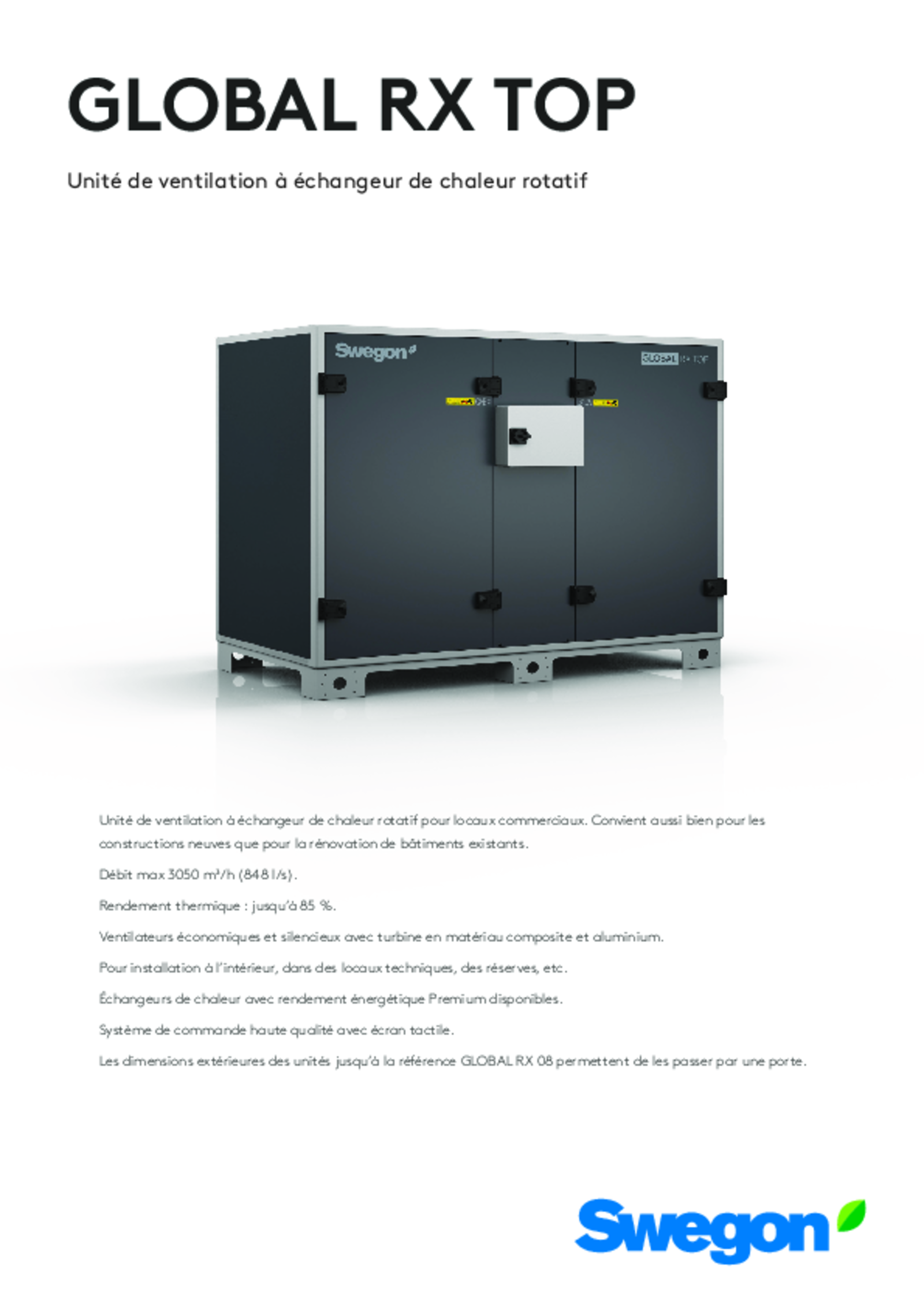 - Débit d’air max. 3.050 m³/h (Ecodesign)
