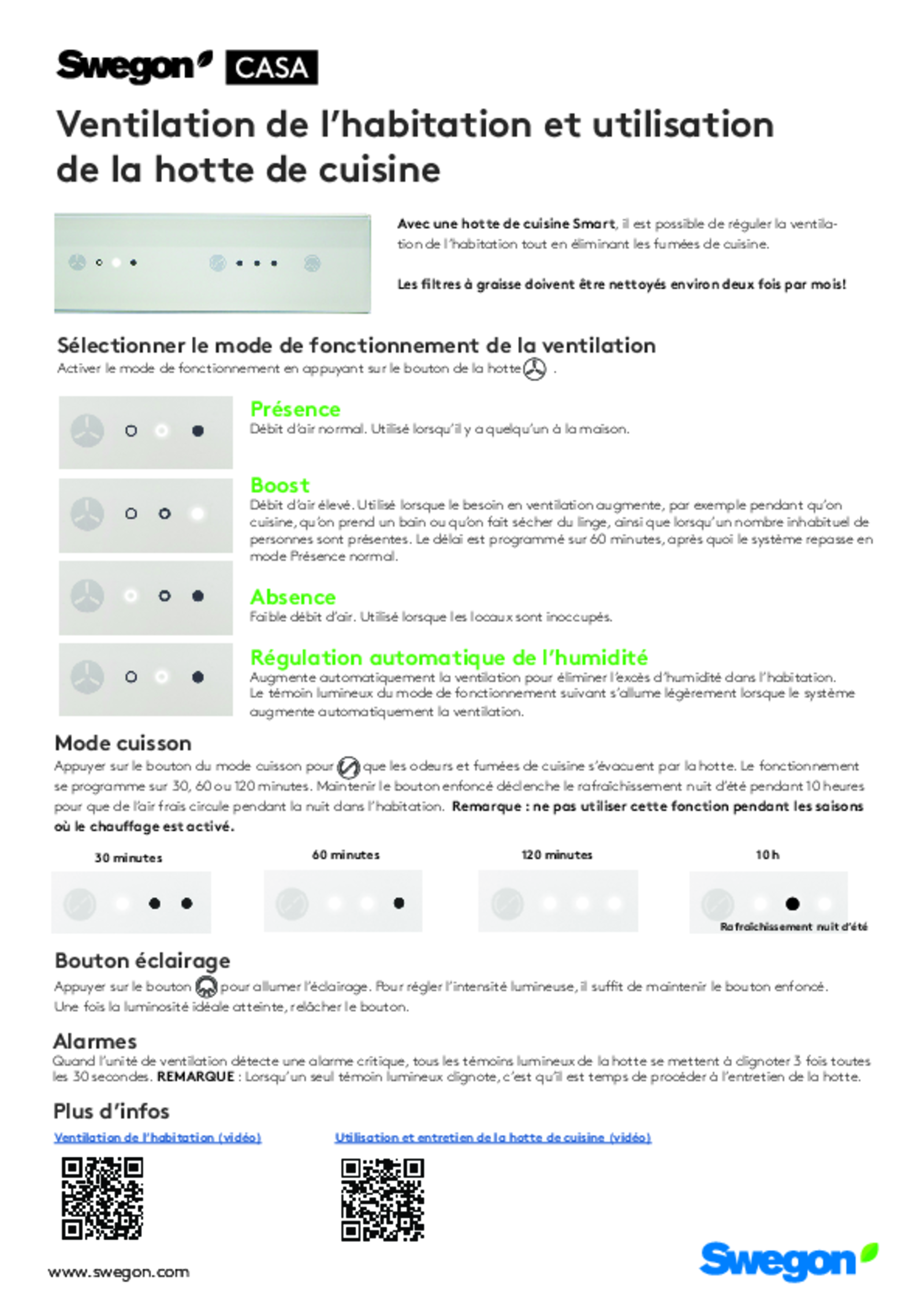 STOVE GUARD - Salsa can be equipped with the Safera Safety stove guard system. The stove guard helps to protect against the usual kitchen accidents by preventing the cooker from being left unsupervised while in use and cutting the power if you forget to turn off the cooker. On the Salsa models that are equipped with Safera, the stove guard is preinstalled in the cooker hood. In addition to this, a power control unit that is approved for use (3-phase or 1-phase) is needed. Swegon also recommends installing a water leakage monitor (SA1).