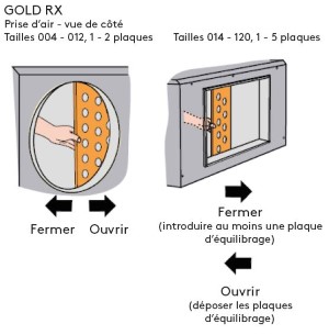 L’équilibre de pression de l’unité se règle à l’aide de plaques montées sur l’admission d’air extrait. Ces plaques d’équilibrage sont livrées avec votre unité (non installées) et doivent être montées par l’installateur lors du raccordement de la gaine d’air extrait. Le réglage doit impérativement être fait lorsque l’ensemble de l’installation aéraulique ainsi que son équilibrage sont terminés (illustrations ci-dessous).