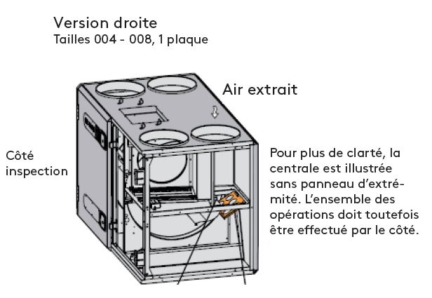 1 - Arrêter la centrale de traitement d’air et ouvrir la porte d’accès au filtre à air extrait.