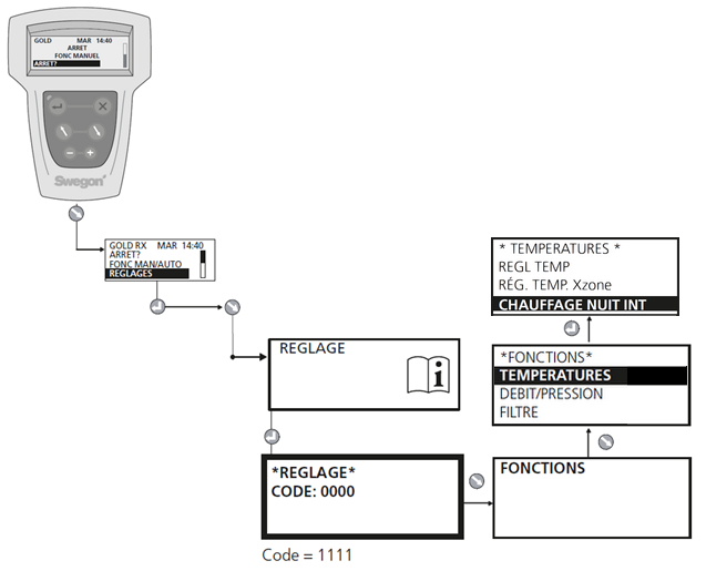 Accéder au menu « CHAUFFAGE NUIT INT » afin de positionner la fonction sur inactive dans le menu MARCHE / ARRÊT.