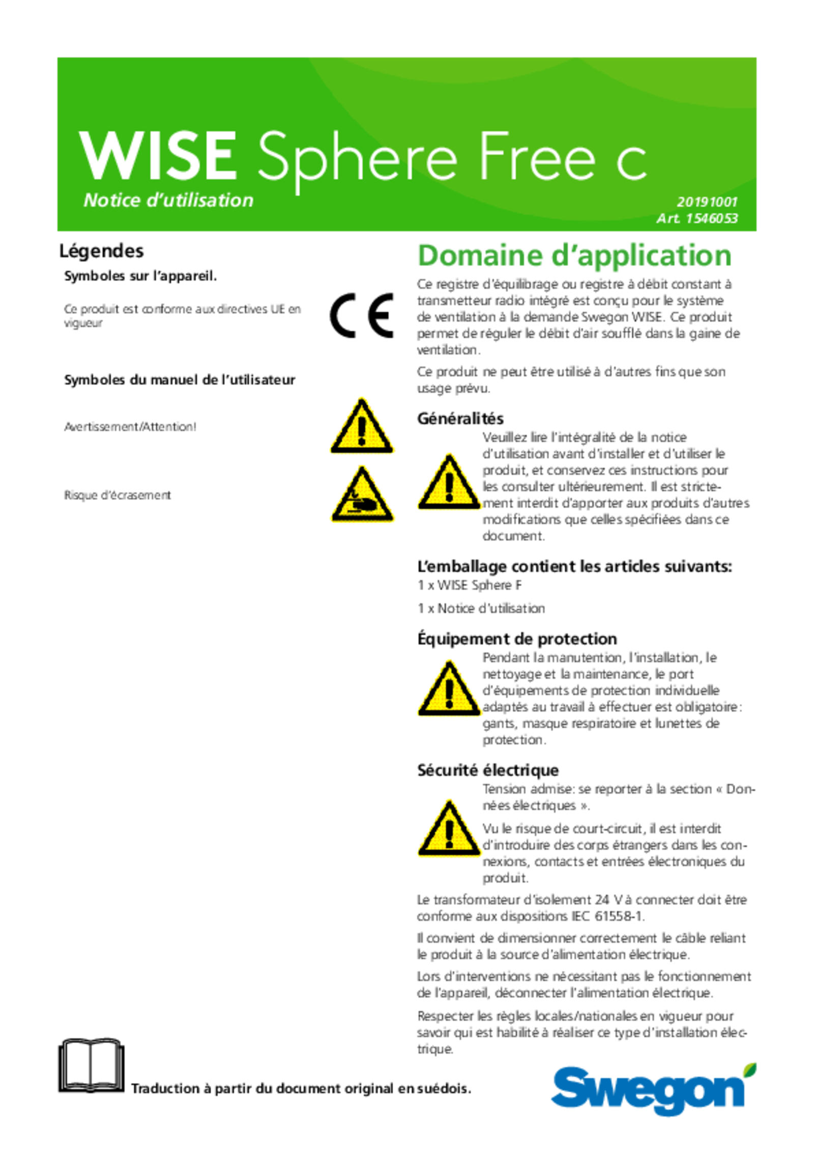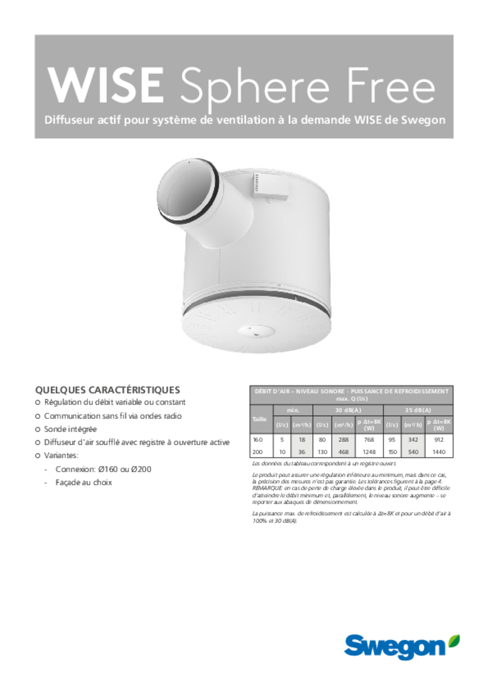 Diffuseur pour système de ventilation à la demande WISE de Swegon