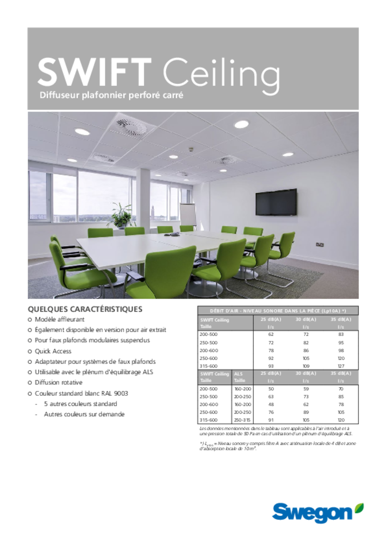 | Diffuseur plafonnier perforé carré (pdf 950.94kB) | SWIFT Ceiling a | Brochure technique | |
