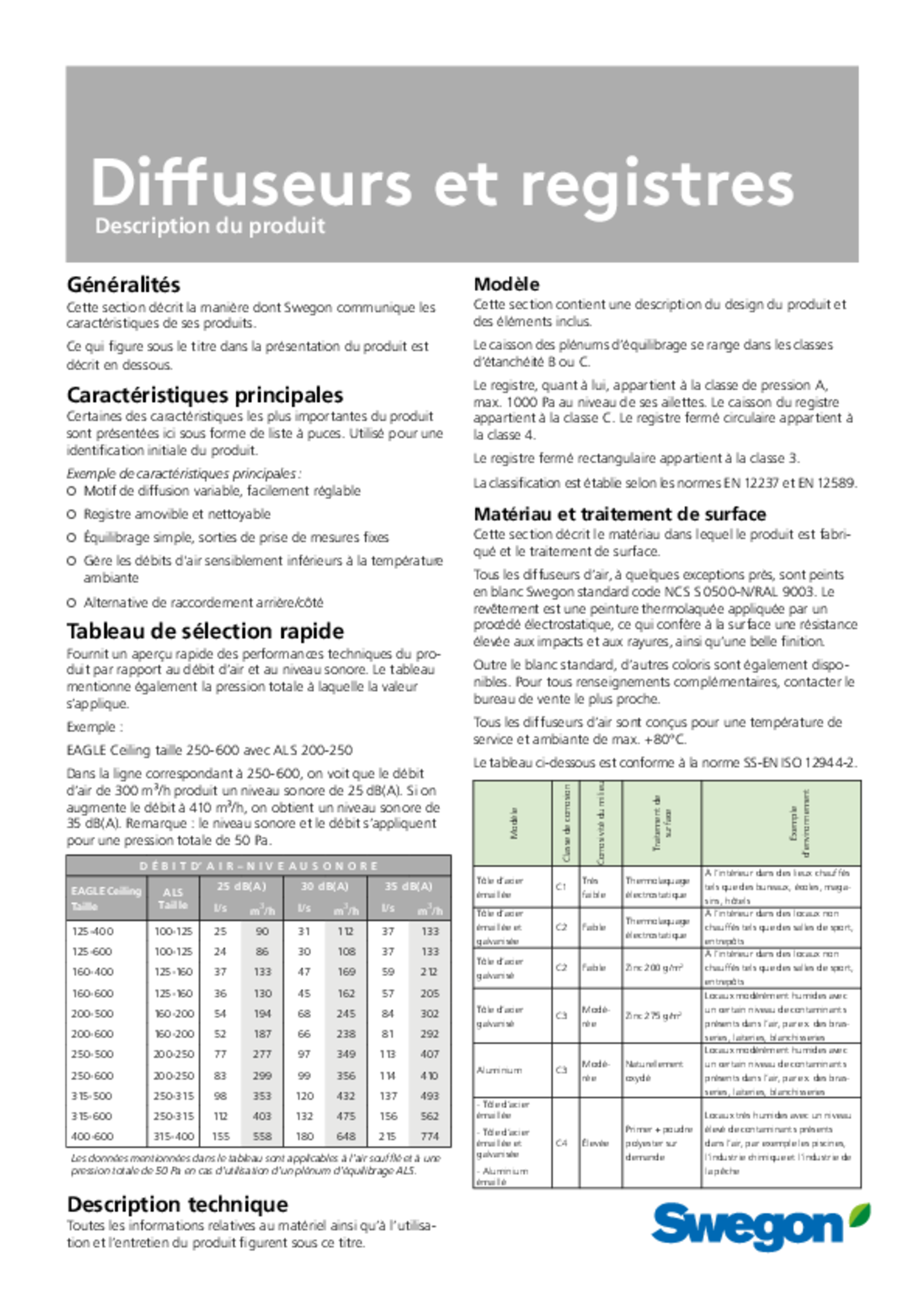 | Description du produit - Diffuseurs et registres (pdf 252.76kB) | Diffuseurs, registres | Brochure | |