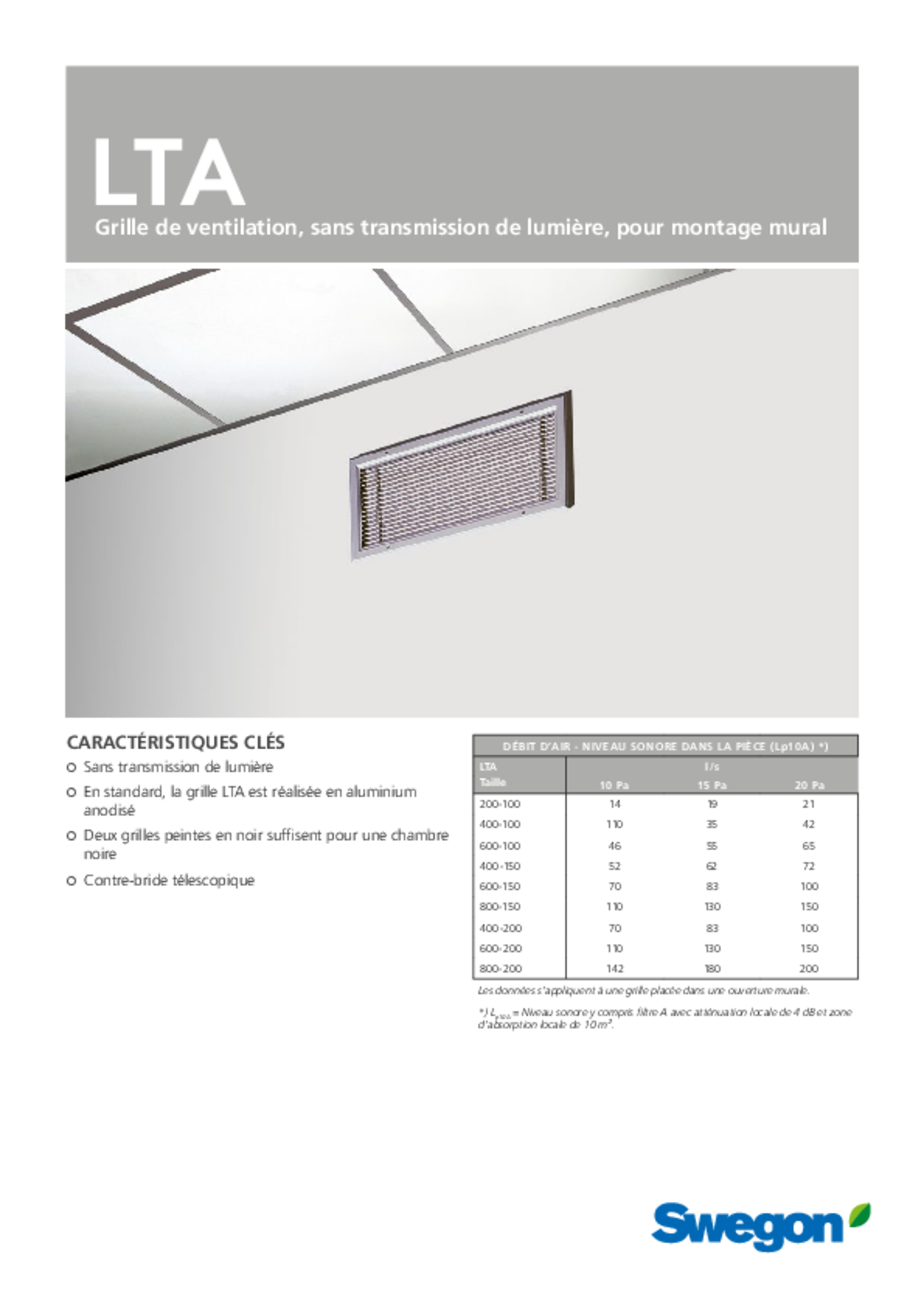 La LTA est une grille rectangulaire à poser au mur ou sur une porte. Elle sert de diffuseur d’air soufflé ou transféré entre deux pièces quand une occultation de la lumière est nécessaire.